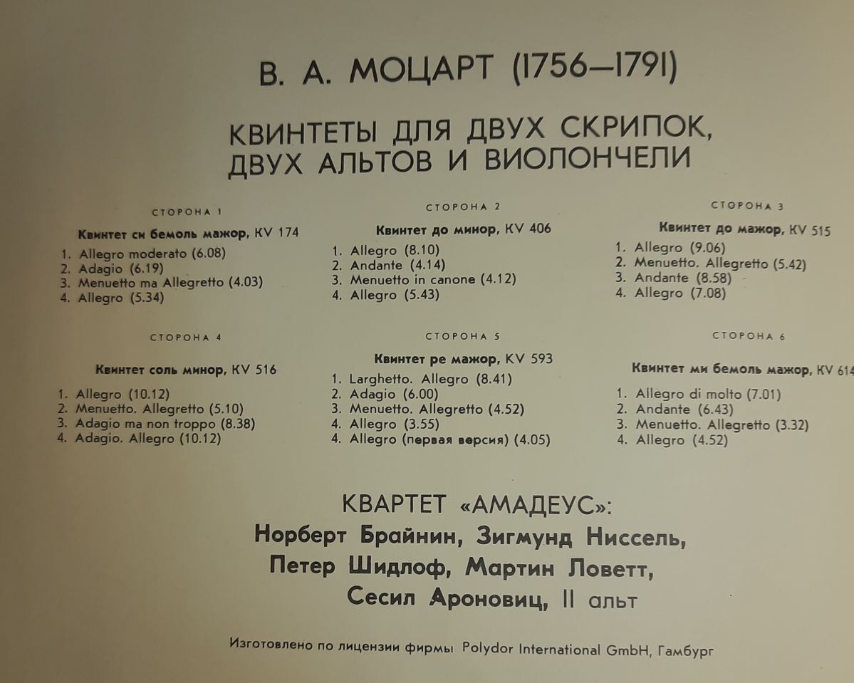 Набор виниловых пластинок (3 шт) "В. Моцарт. Квинтеты" 300 мм. (Сост. отл.)