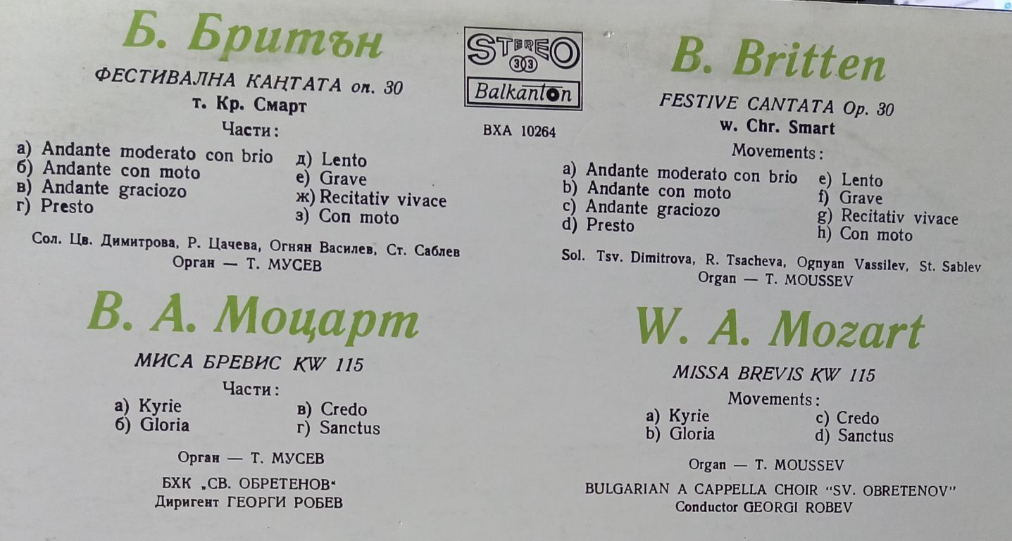 Пластинка виниловая "В. Моцарт. Миса Бревис" 300 мм. (Сост. на фото)