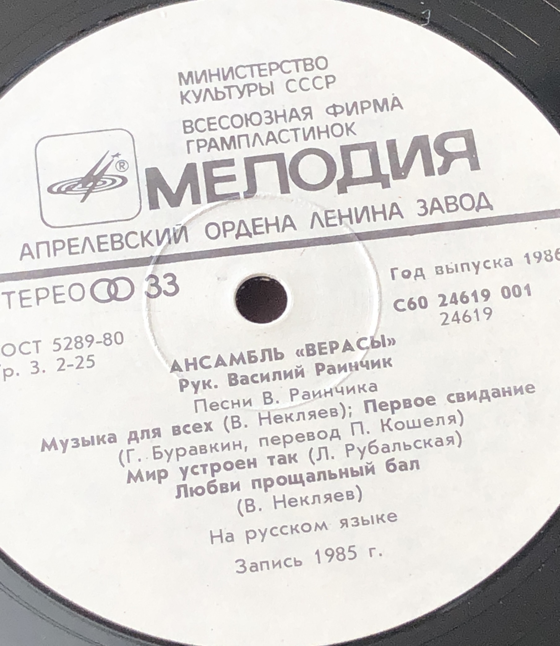 Виниловая пластинка Ансамбль Верасы (2 пластинки) 300 мм