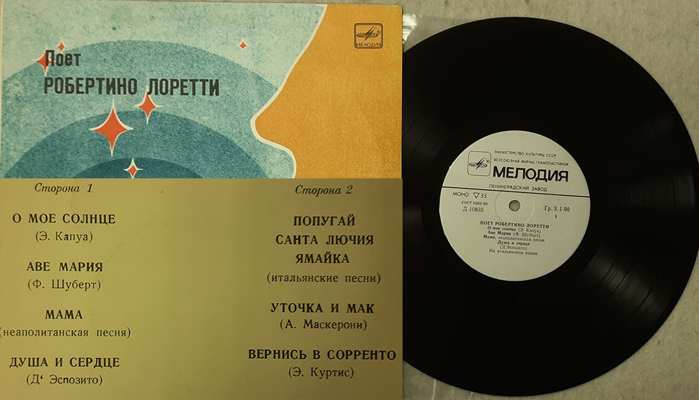 Пластинка виниловая "Р. Лоретти. О мое солнце" 250 мм. (Сост. отл.)