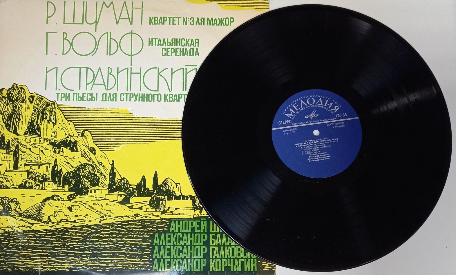 Пластинка виниловая "Р. Шуман, Г. Вольф, И. Стравинский. Квартет 3 ля мажор,итальянская серенада" М