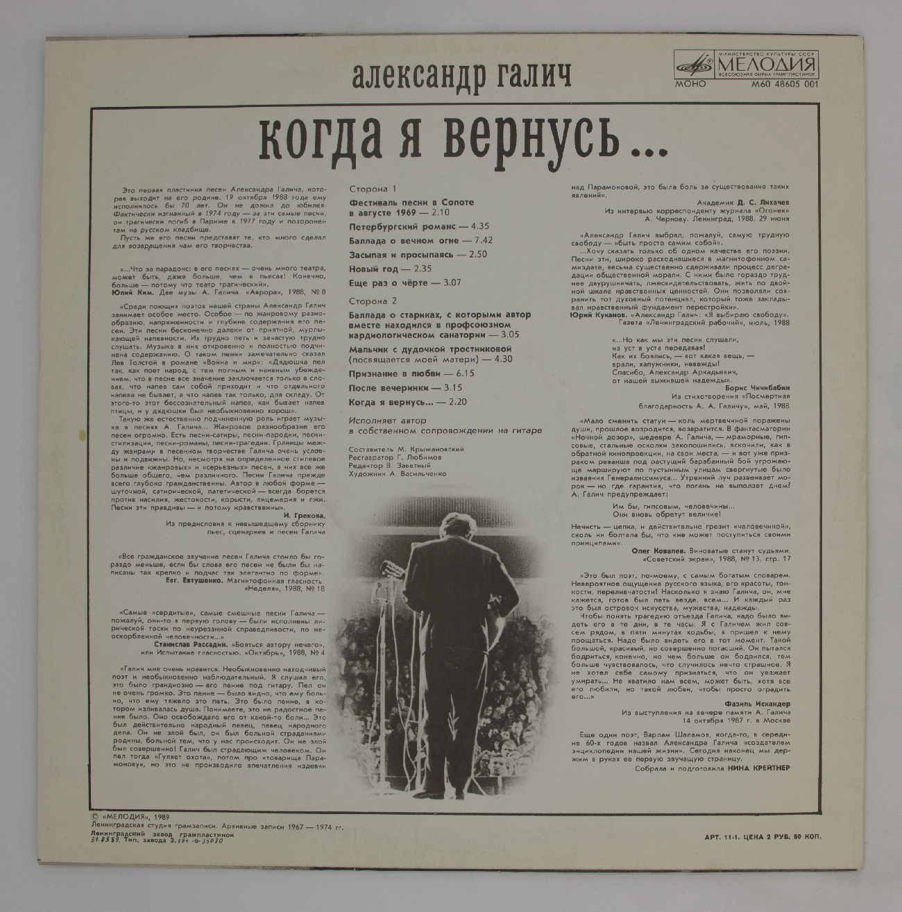 Виниловая пластинка Александр Галич - Когда я вернусь..., - LP