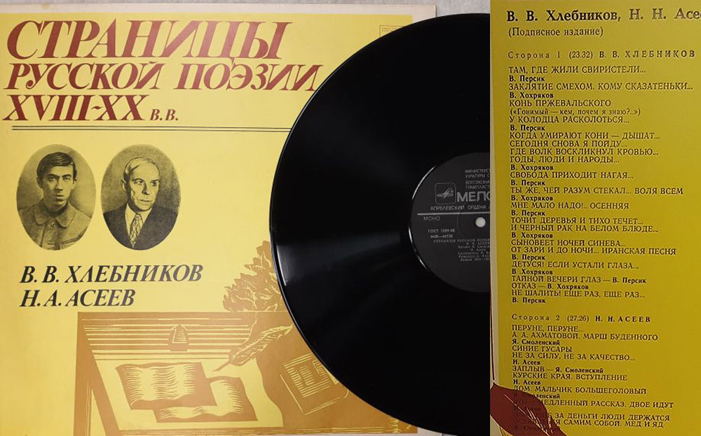 Пластинка виниловая "В.В. Хлебников, Н.А. Асеев. Русская поэзия" 300 мм. (Сост. отл.)