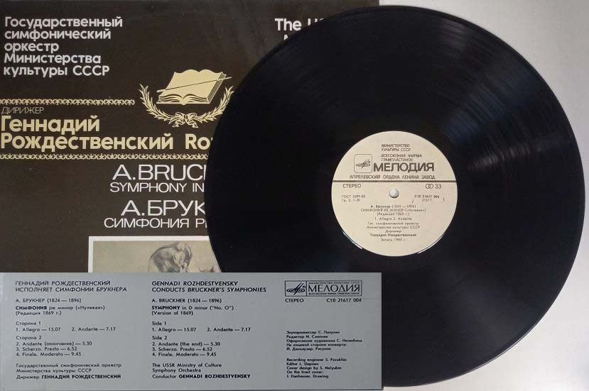 Пластинка виниловая "Г. Рождественский. А. Брункер. Симфония ре минор" 300 мм. (Сост. отл.)