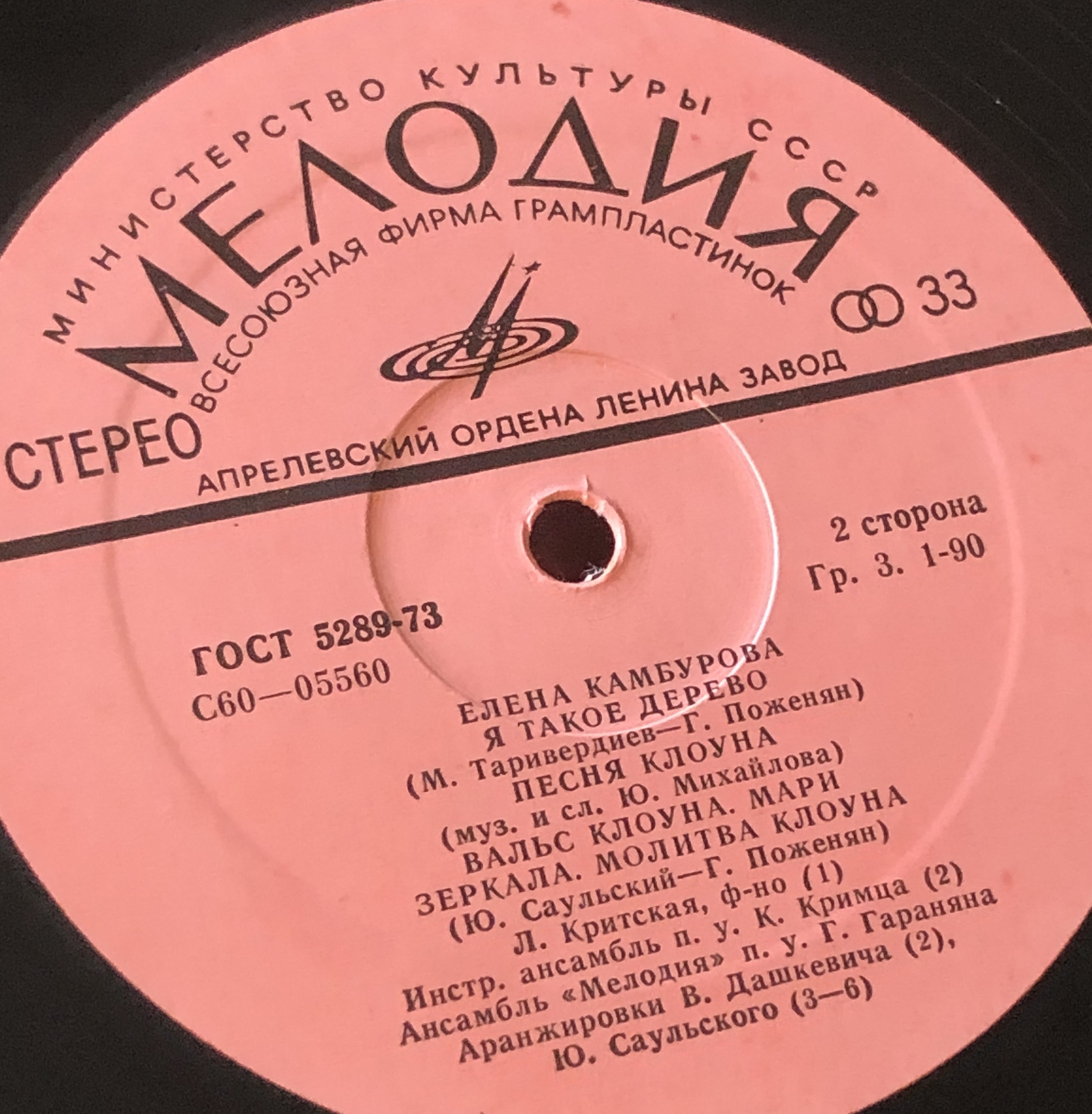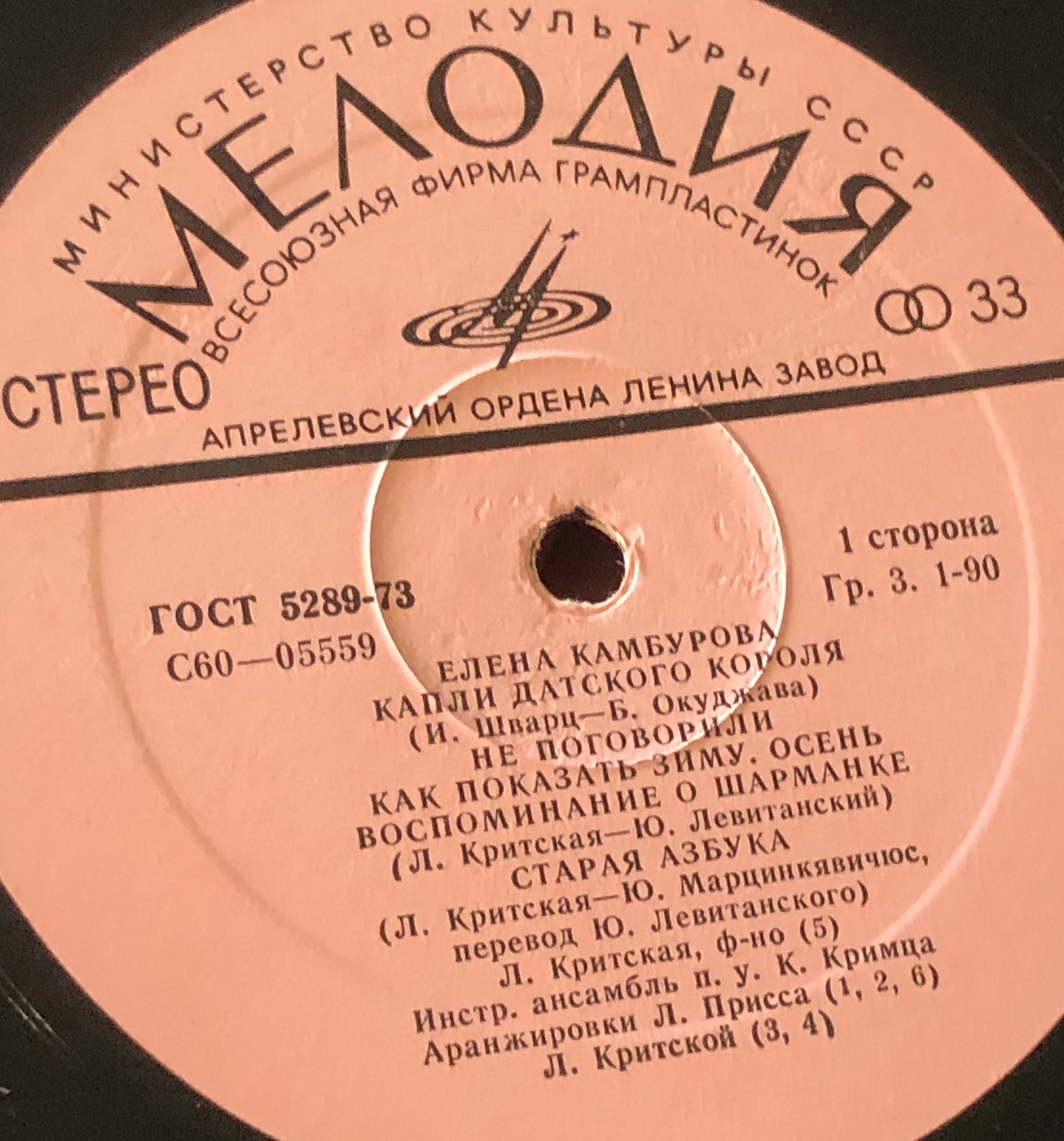 Виниловая пластинка Елена Камбурова Капли Датского Короля 300 мм