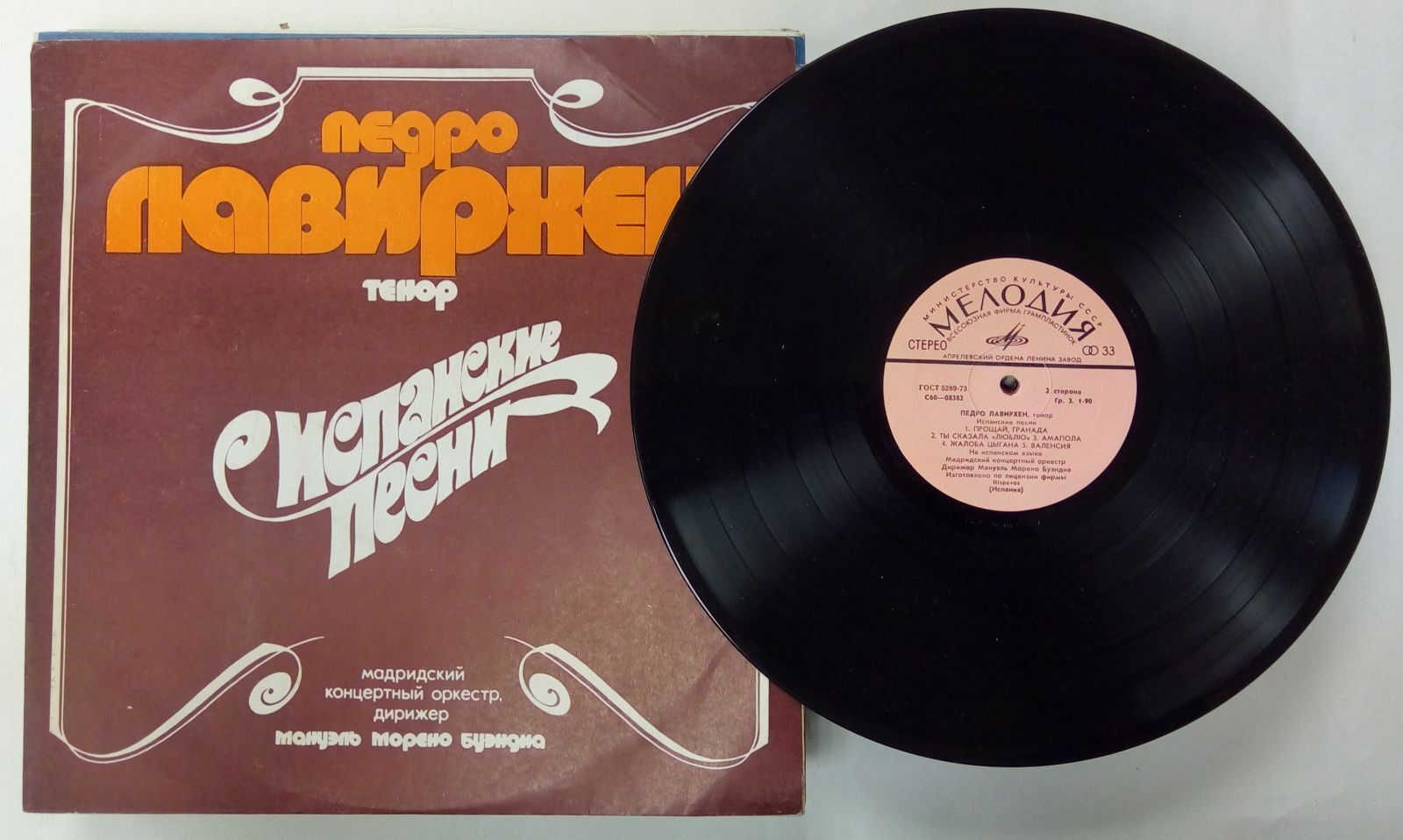 Виниловая пластинка ". П. Лавирхен (тенор). Испанские песни" 300 мм. (Сост. отл.)