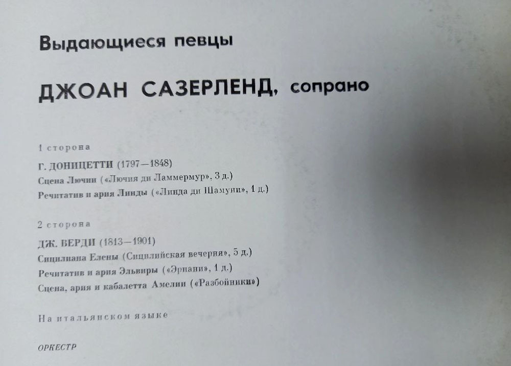 Пластинка патефонная "Н. Гедда, С. Берроуз, К. Бегоци. Беверли Силлз. Дуэты из опер" 300 мм.