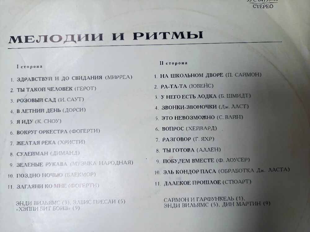 Виниловая пластинка "Д.Ласт. Мелодии и ритмы" 300 мм. (Сост. на фото)