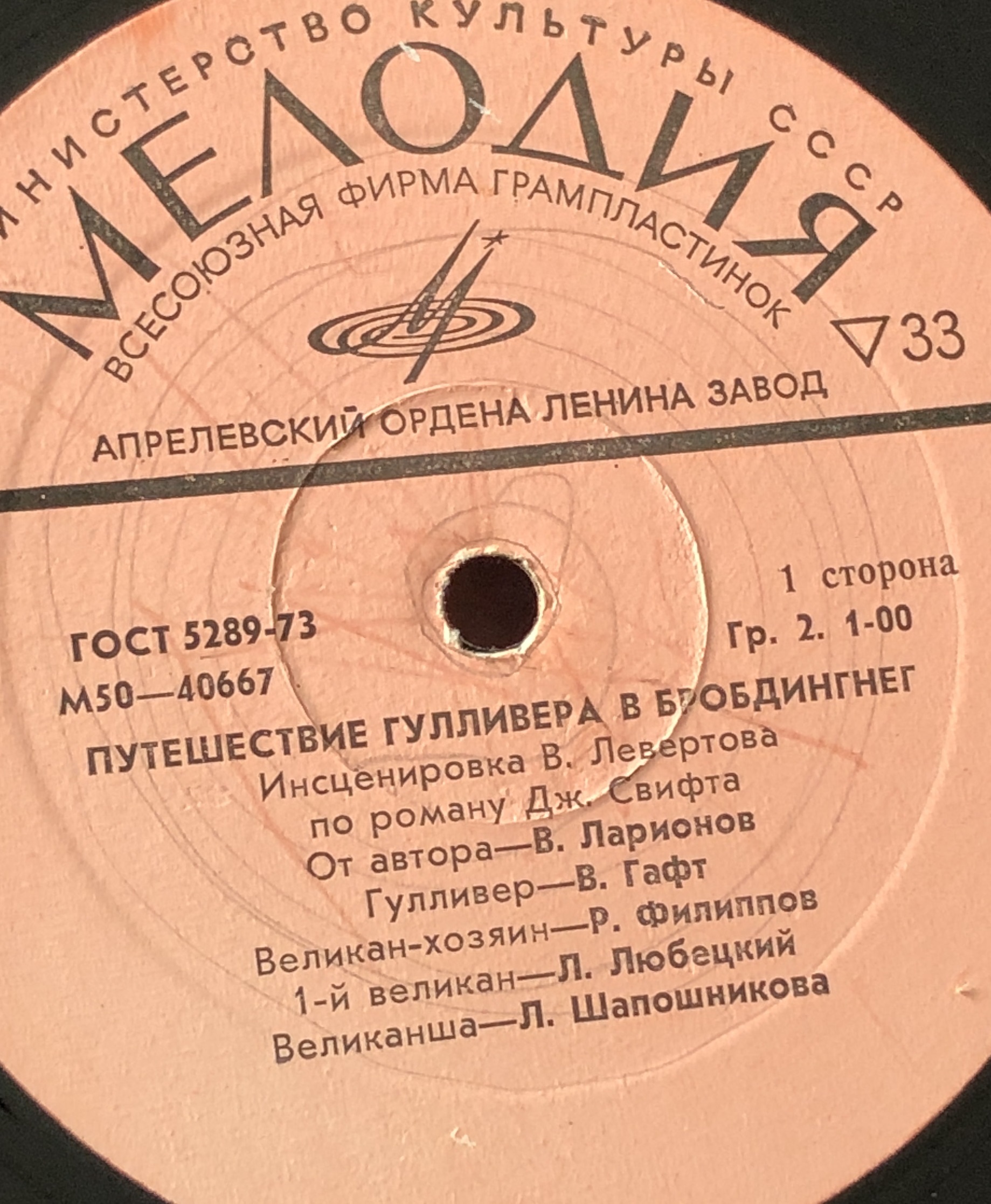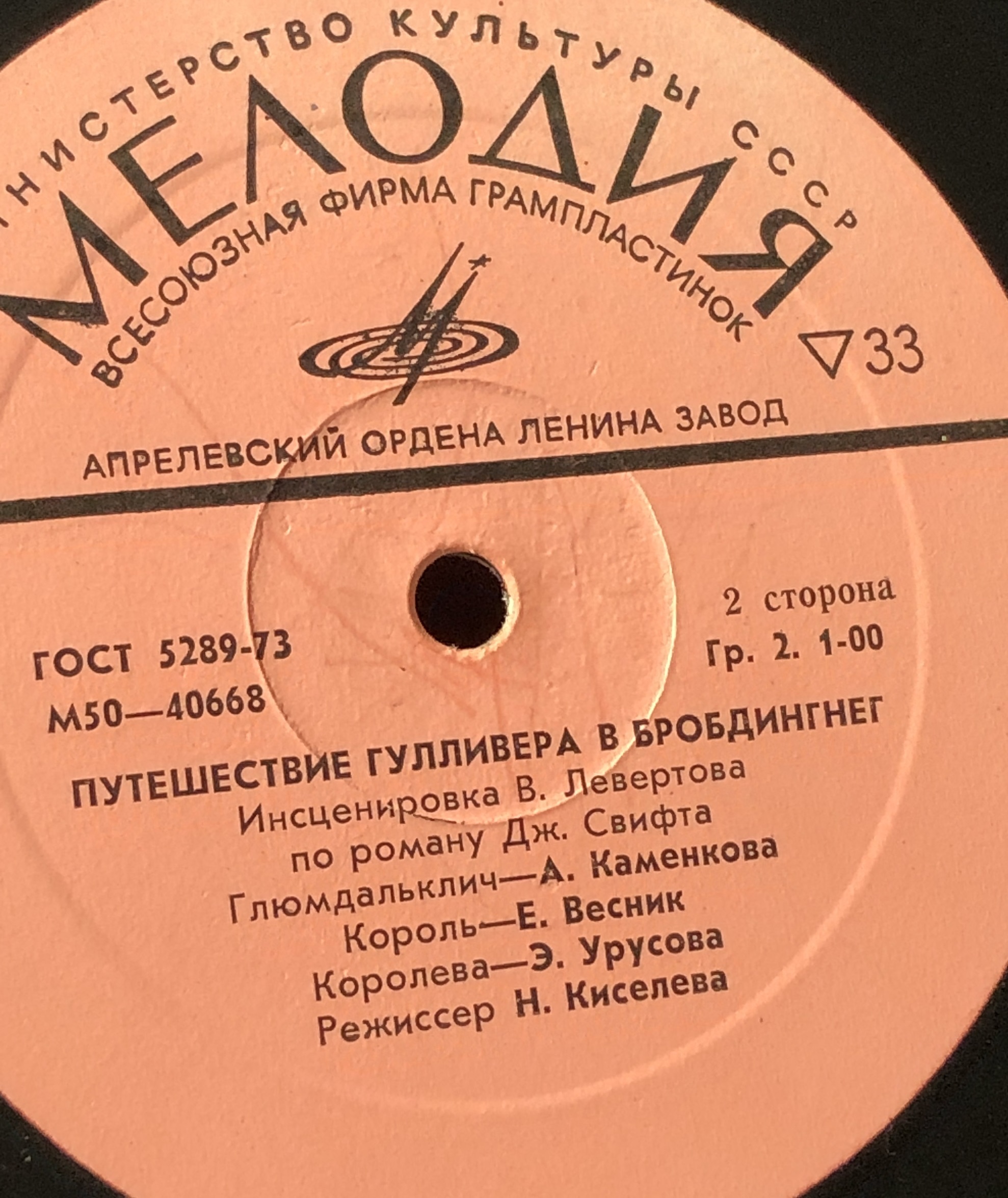 Виниловая пластинка Дж. Свифт Путешествие Гулливера В Бробдингнег 300 мм