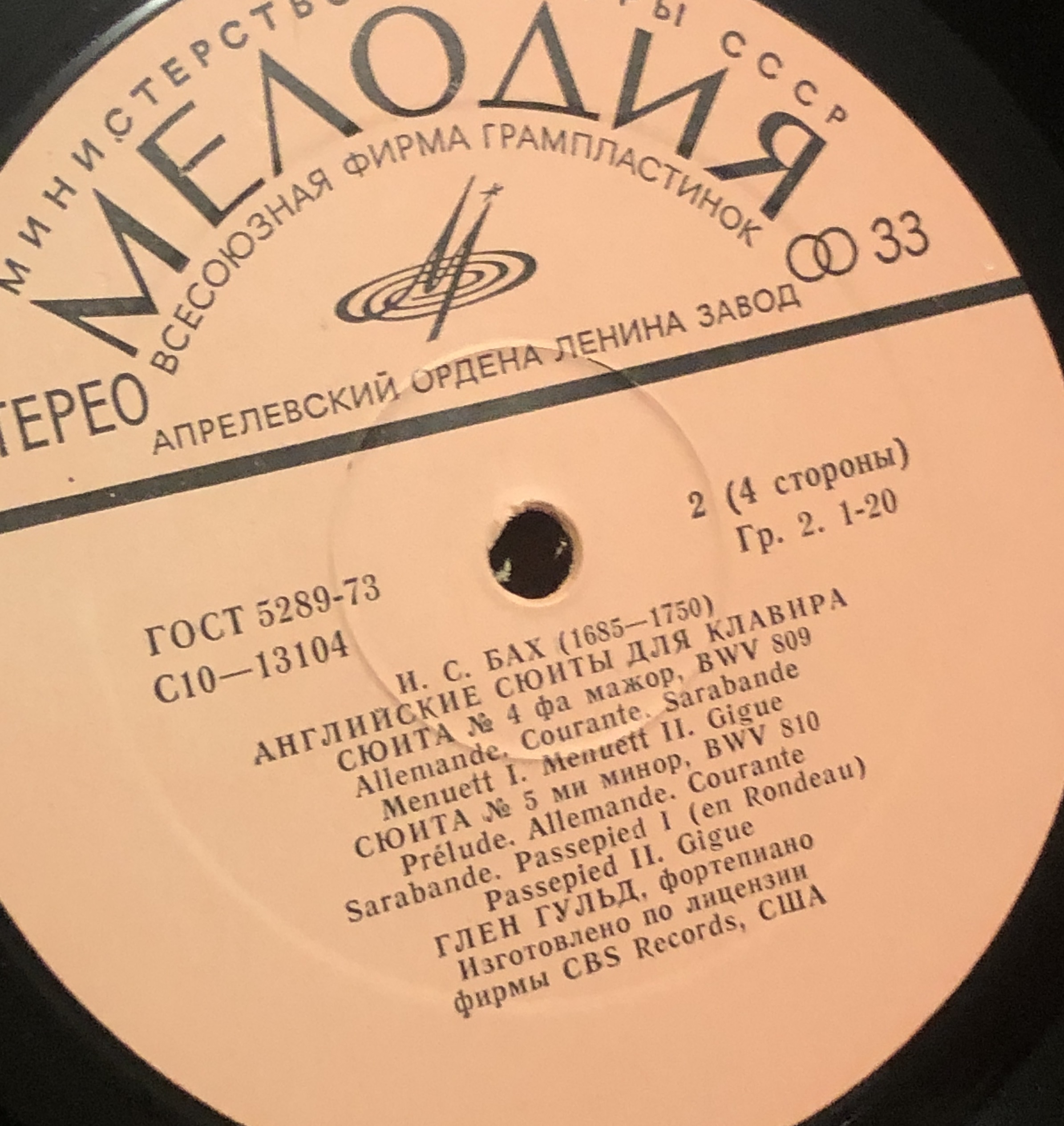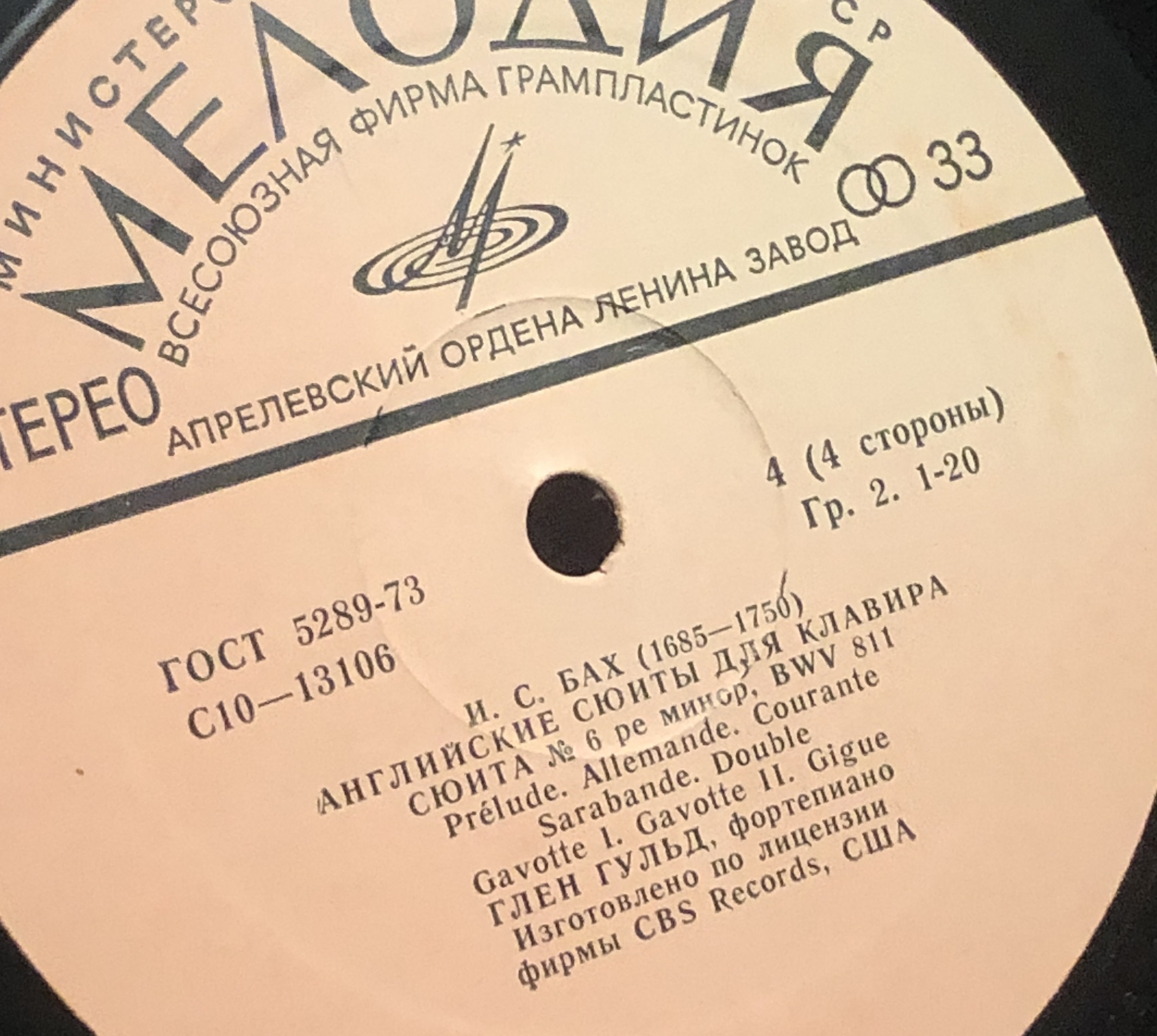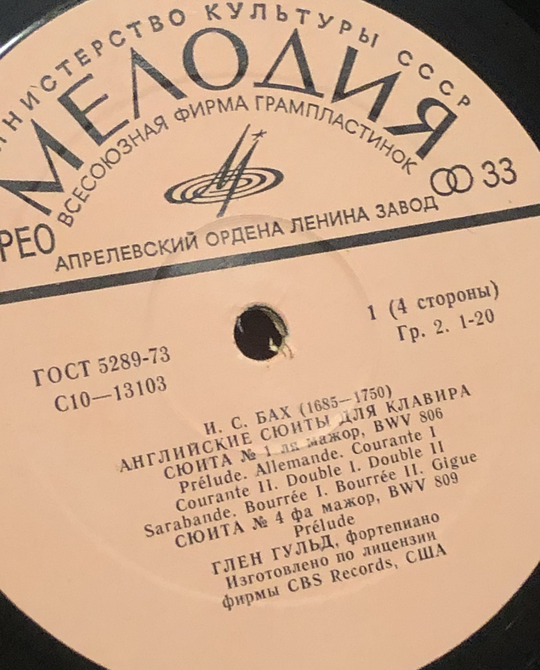 Виниловая пластинка И. С. Бах Глен Гульд Английские Сюиты (2LP), 300 мм