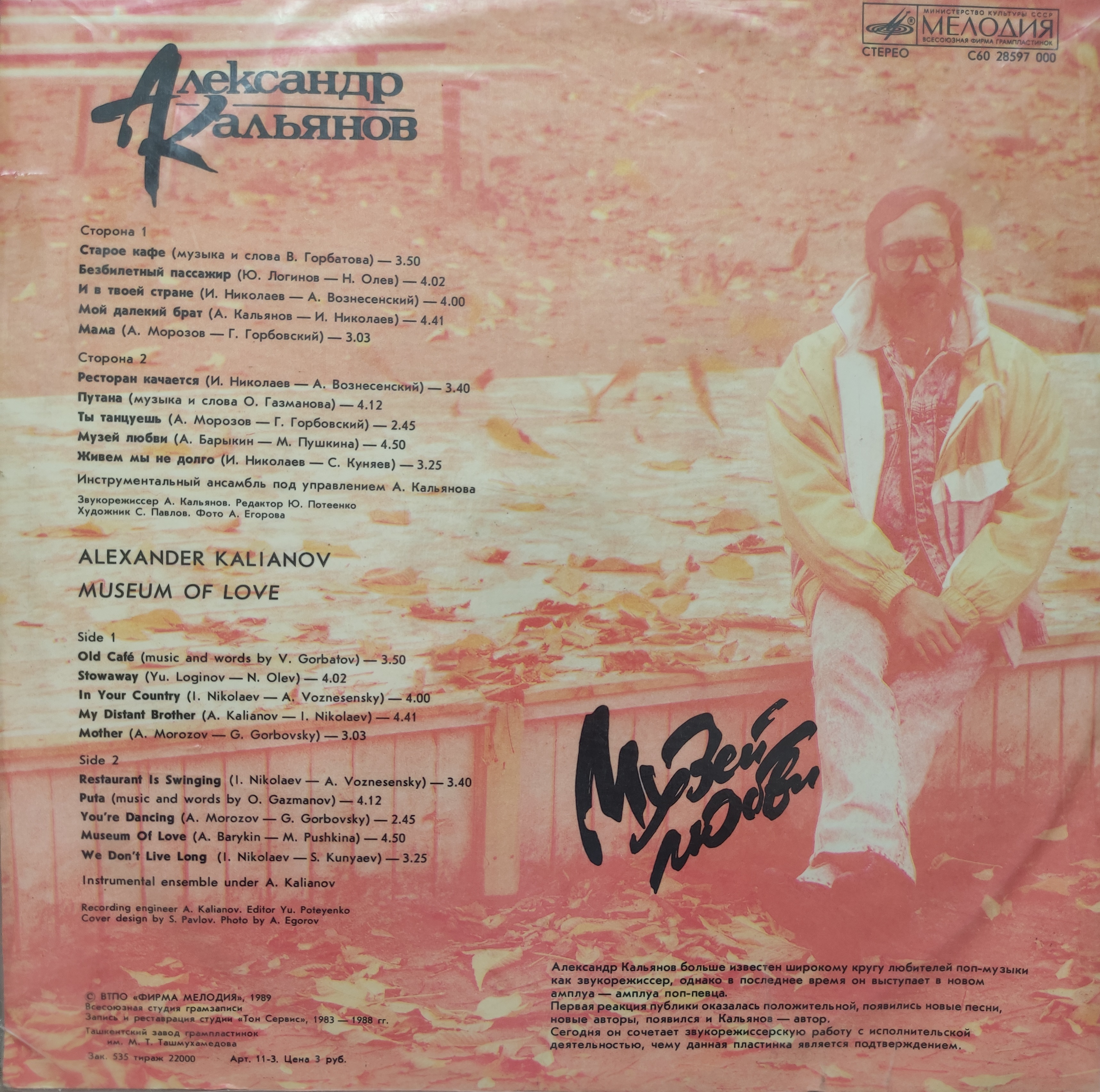 Виниловая пластинка. Александр Кальянов:"Музей Любви". См. описание