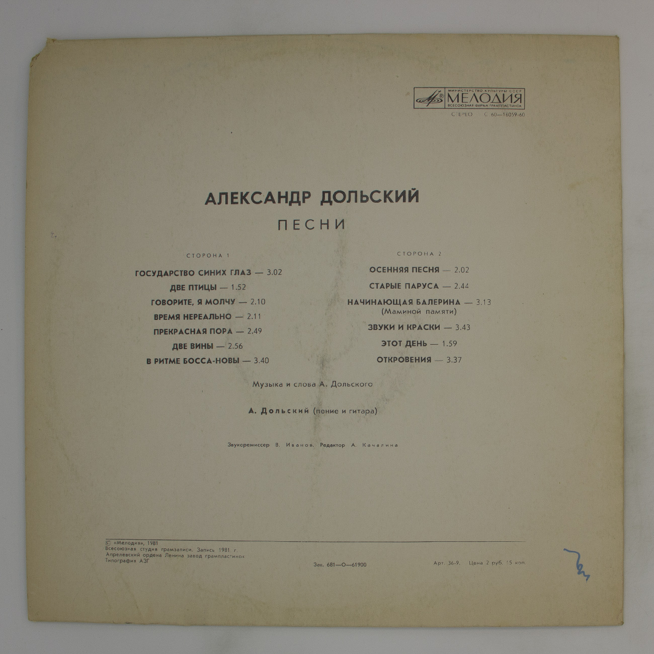 Виниловая пластинка Александр Дольский - Песни - LP