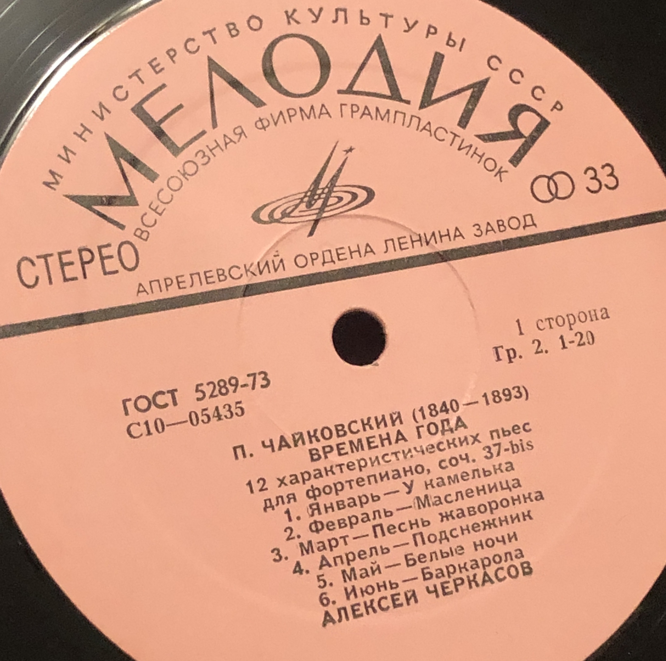 Виниловая пластинка Петр Ильич Чайковский Времена года, 300 мм