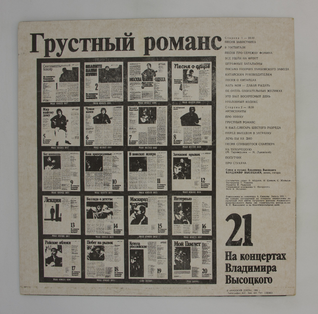 Виниловая пластинка Владимир Высоцкий - Грустный романс - LP