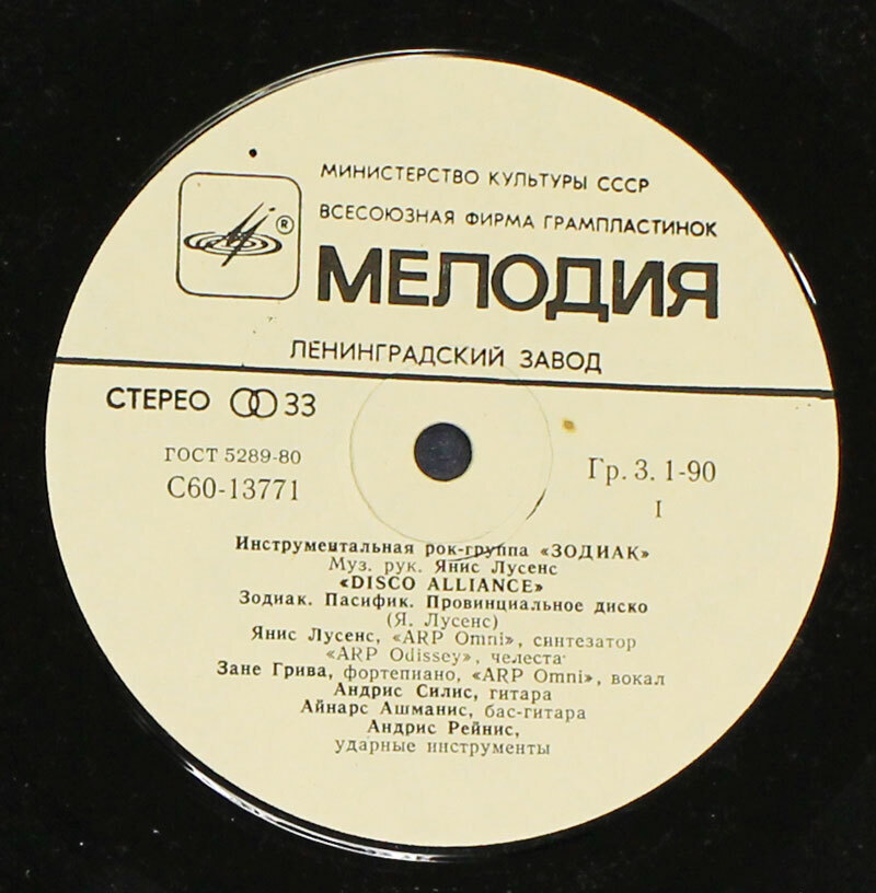 Пластинка виниловая "Зодиак. Disco Alliance", Мелодия, 70-е гг.