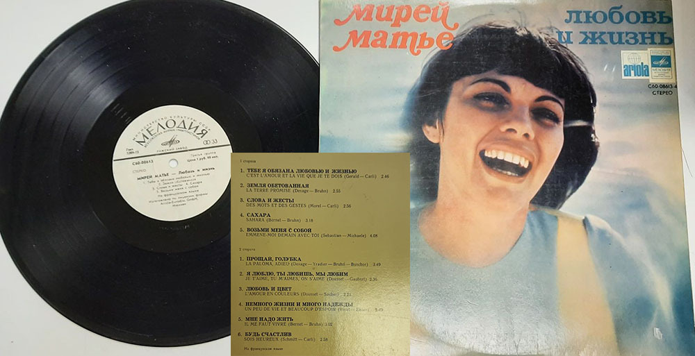 Пластинка виниловая "М. Матье. Любовь и жизнь" 300 мм. (Сост. на фото)