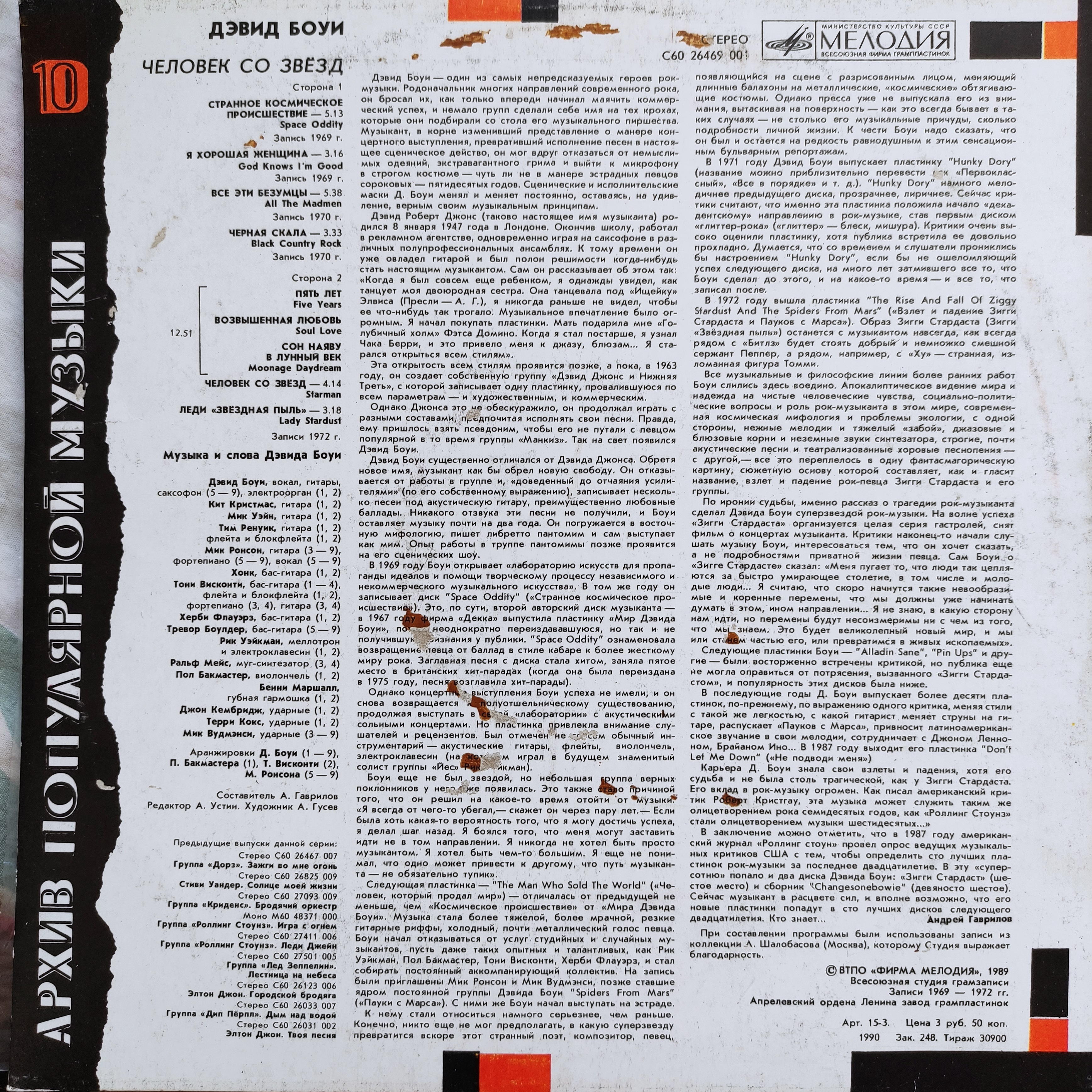 Пластинка виниловая. ДЭВИД БОУИ (DAVID BOWIE): "ЧЕЛОВЕК СО ЗВЁЗД". В идеале