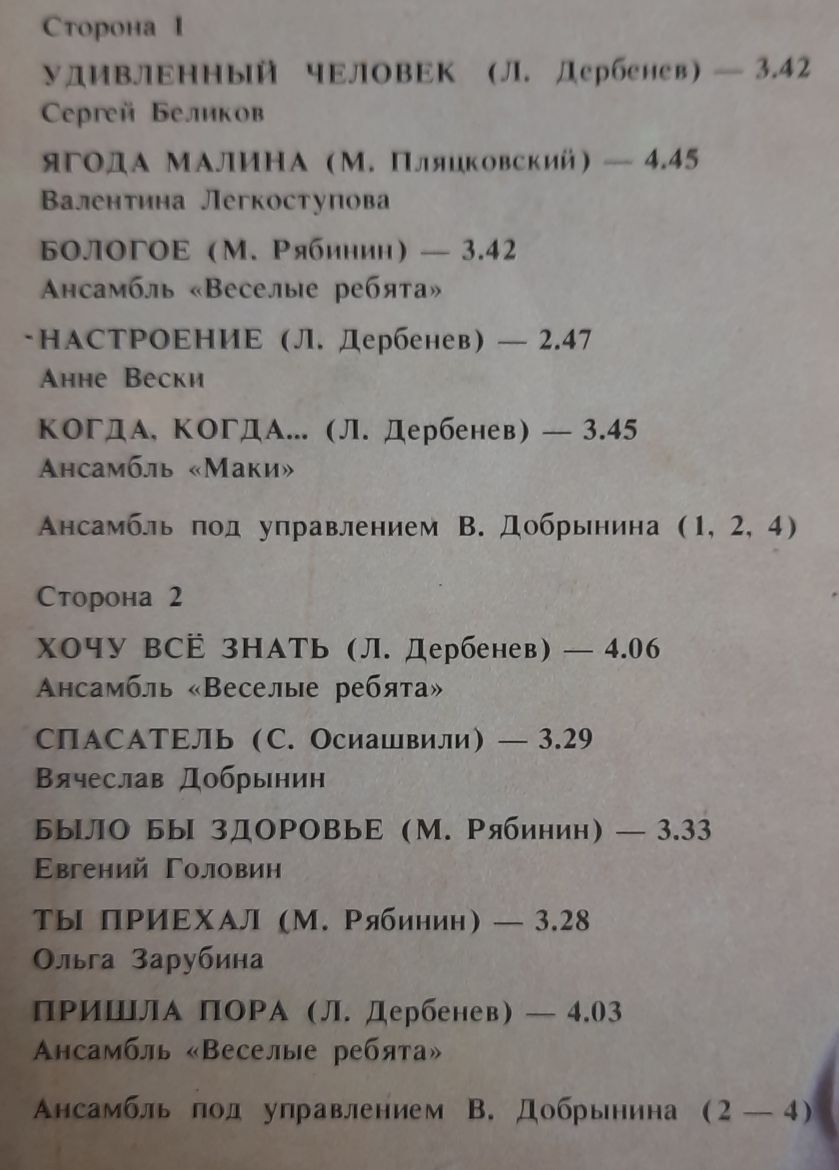 Пластинка виниловая "В. Добрынин. Настроение" 300 мм. (Сост. отл.)
