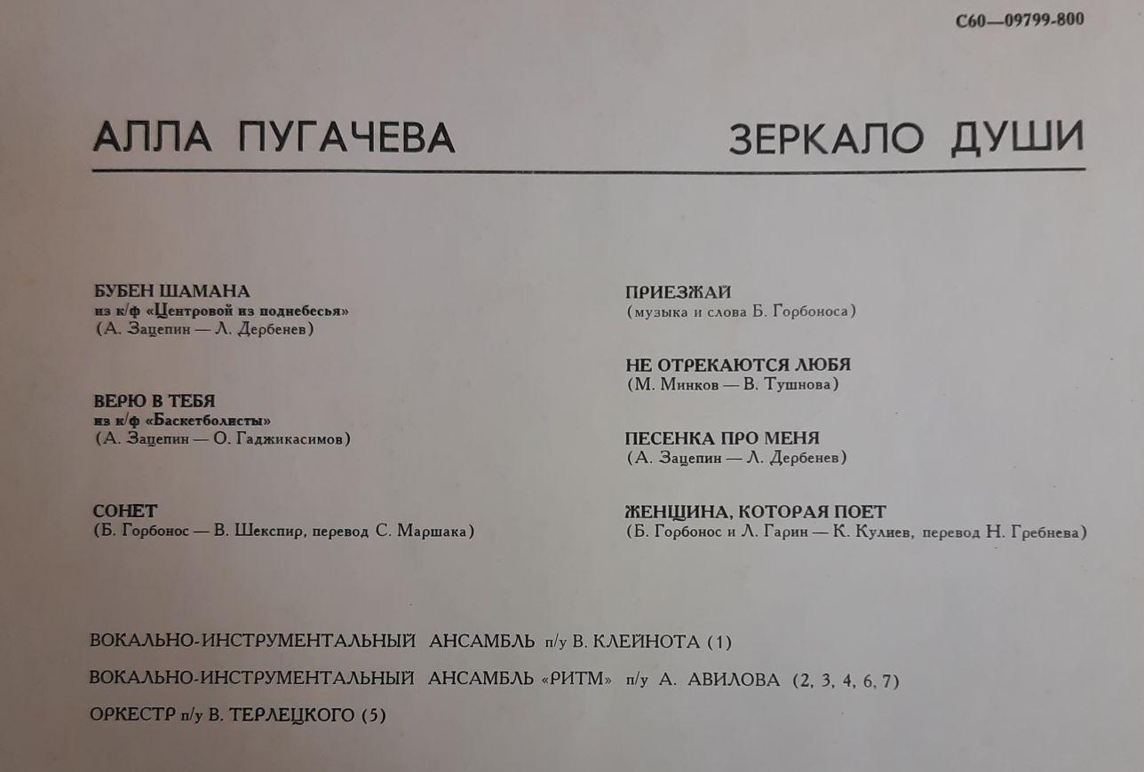 Пластинка виниловая "А. Пугачёва. Зеркало души" 300 мм. (Сост. отл.)