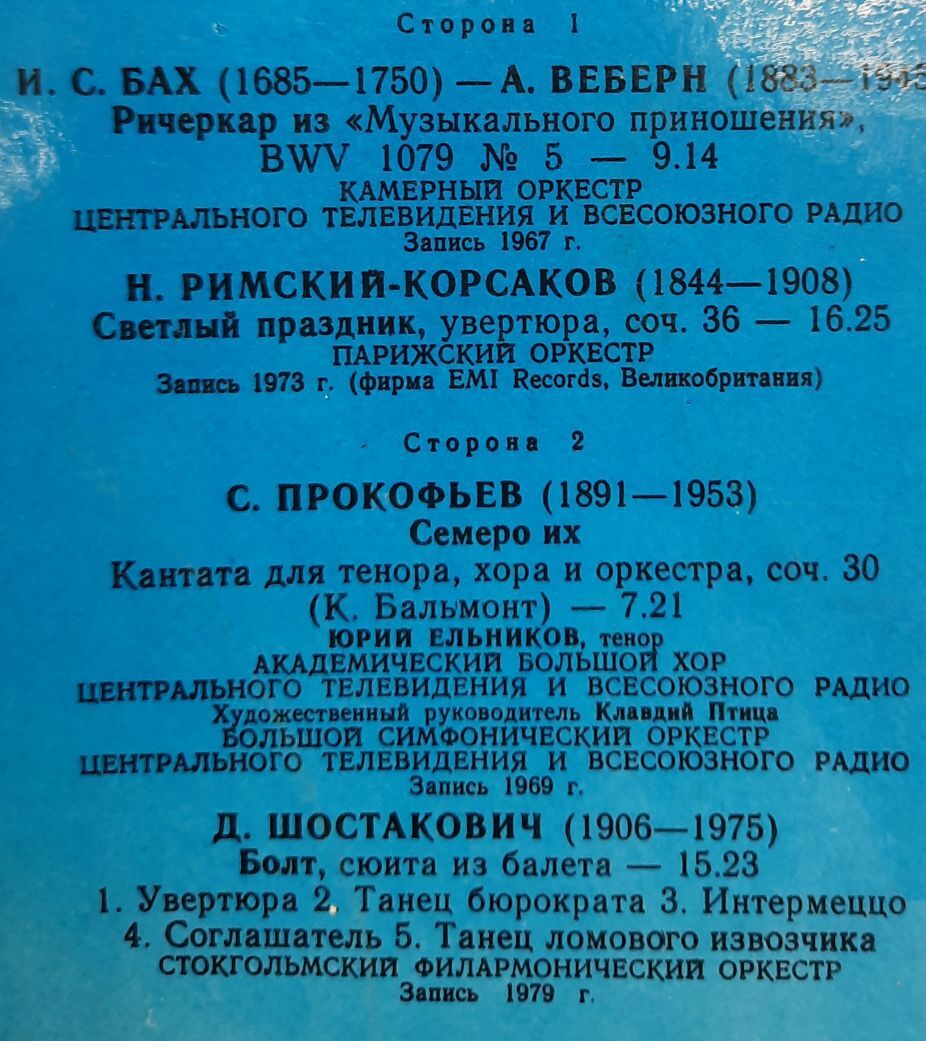 Пластинка виниловая "Э. Серов. Ленинградский оркестр старинной и современной музыки" 300 мм.