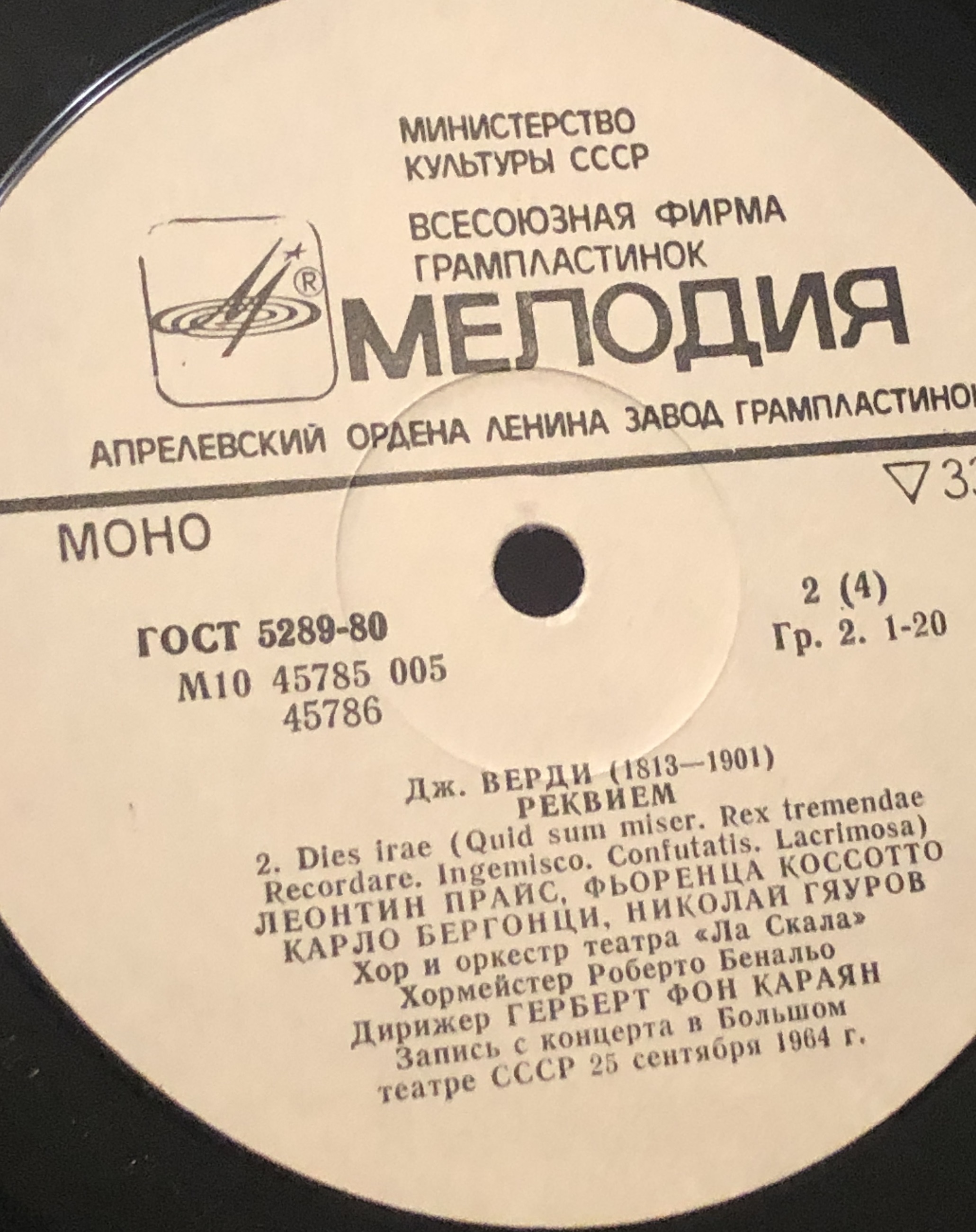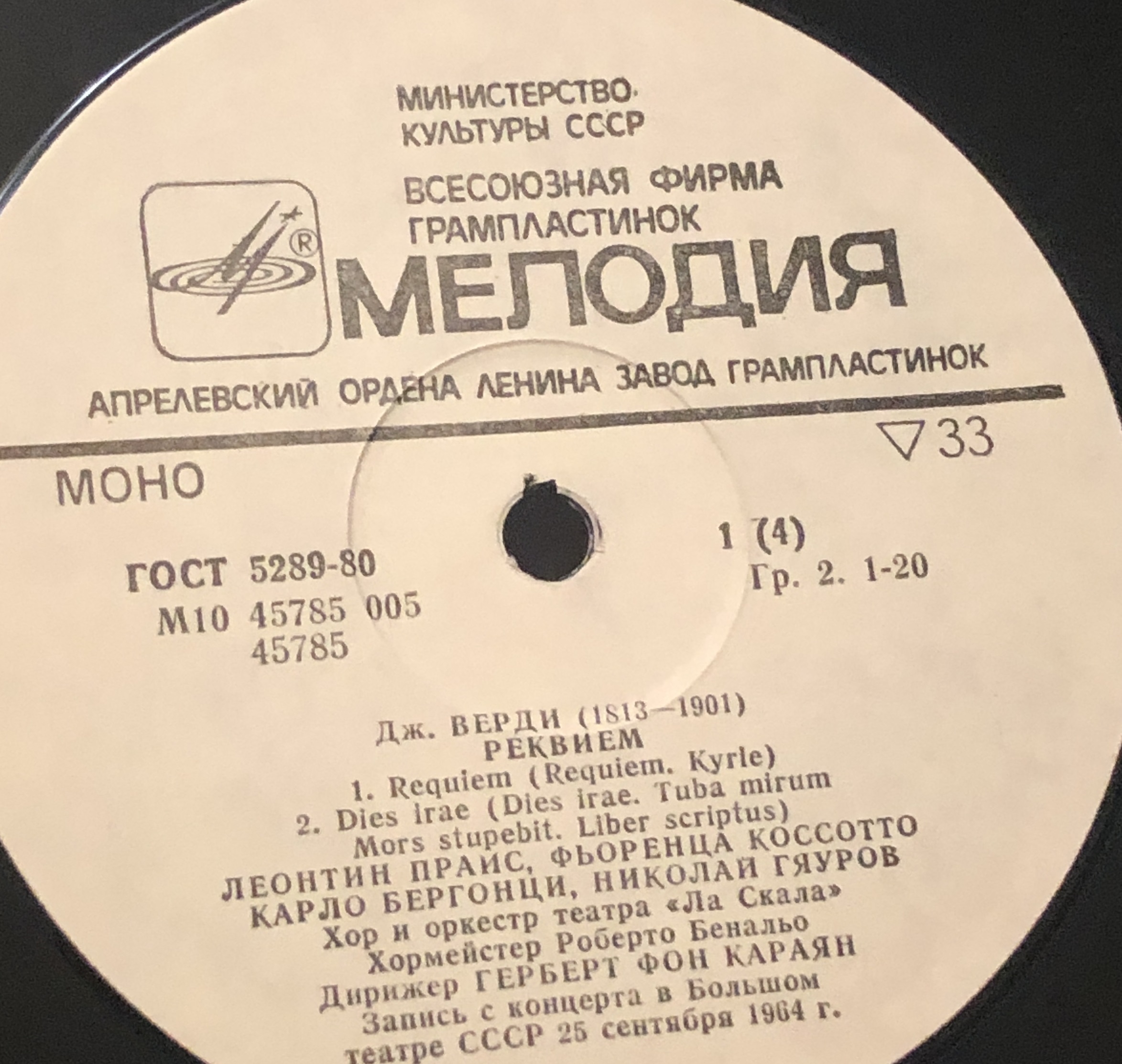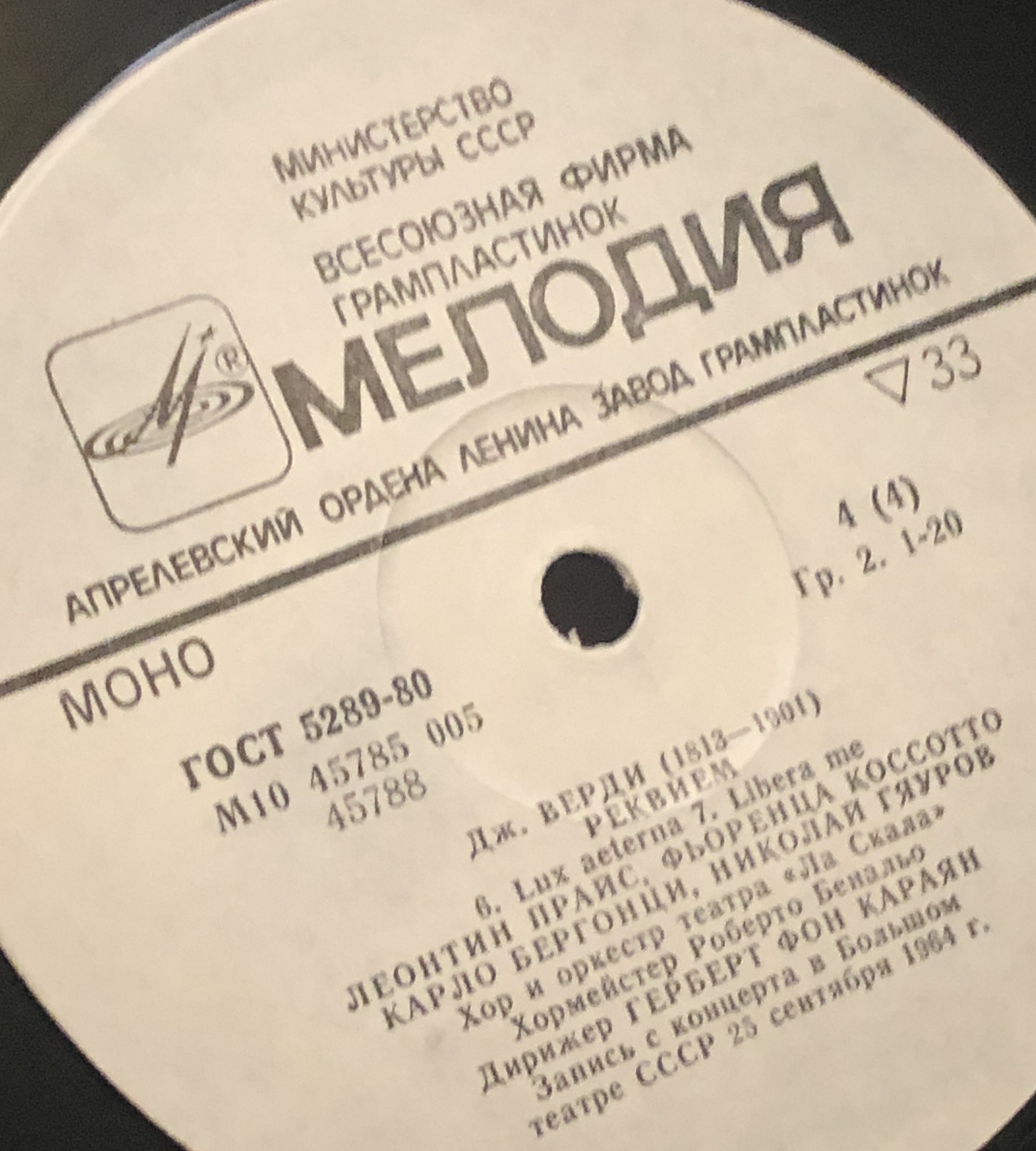 Виниловая пластинка Дирижер Герберт фон Караян Дж.Верди Реквием