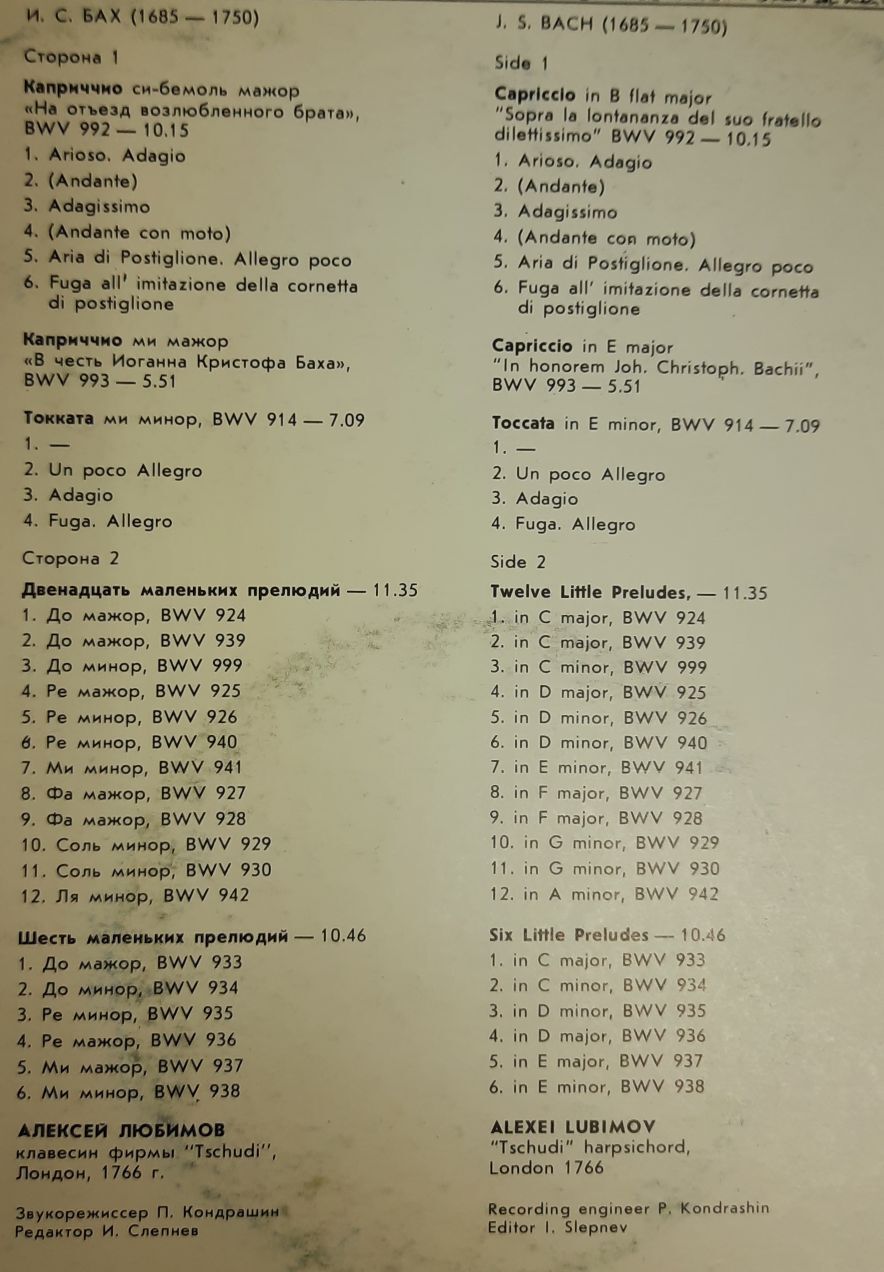 Пластинка виниловая "И. Бах. Хоралы для органа" 300 мм. (Сост. отл.)