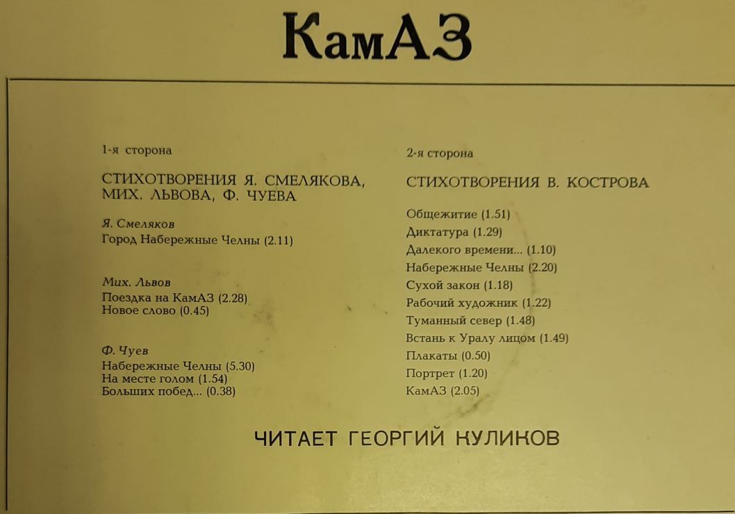 Пластинка виниловая "Г. Куликов. КамАЗ" 300 мм. (Сост. отл.)