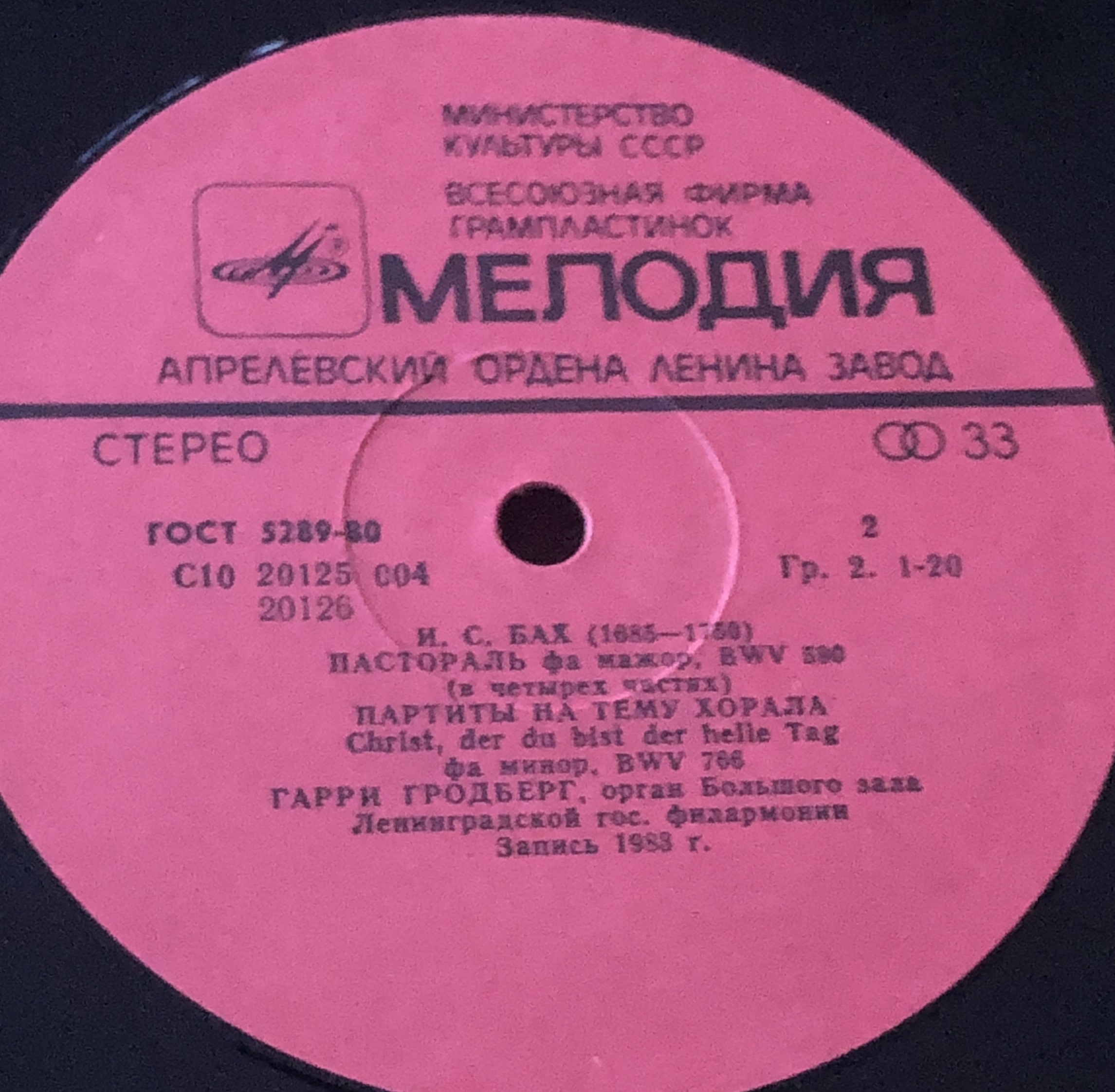 Виниловая пластинка И.С. Бах Гарри Гродберг 300 мм