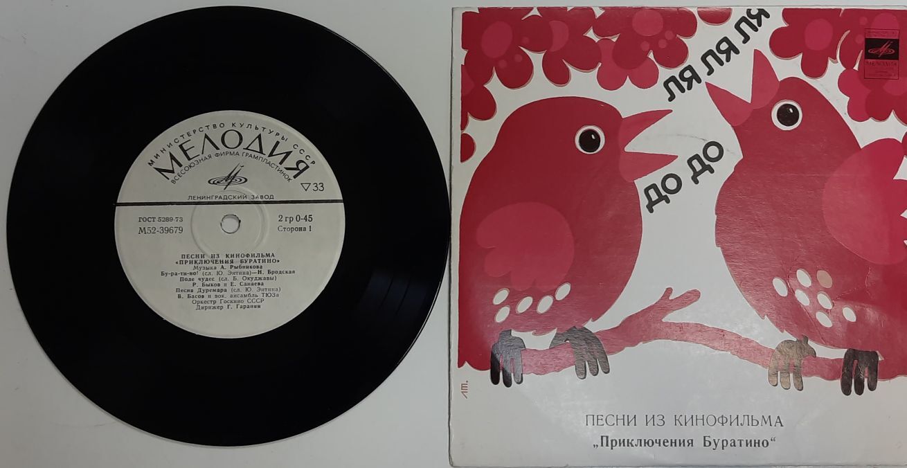Пластинка виниловая "А. Рыбников. Песни из к ф "Приключения Буратино" 175 мм. (Сост. на фото