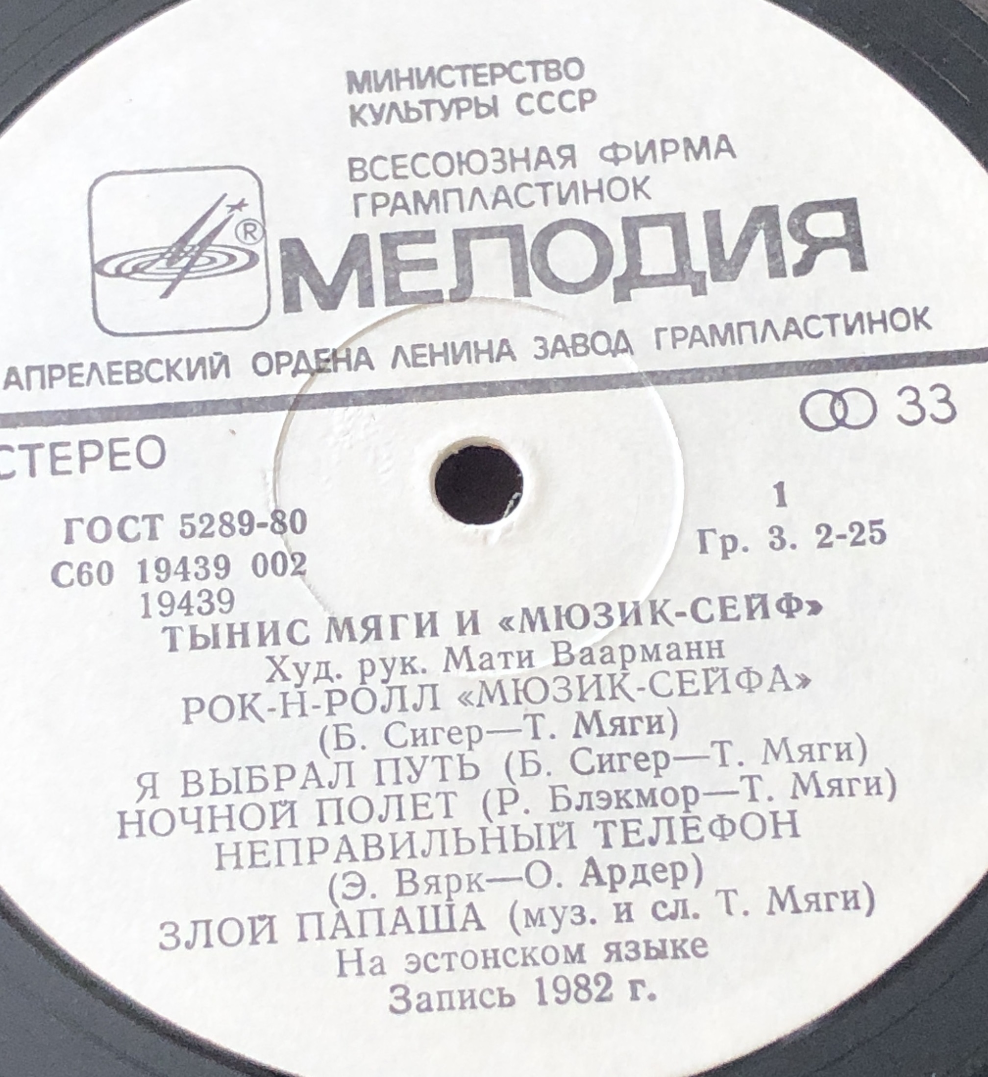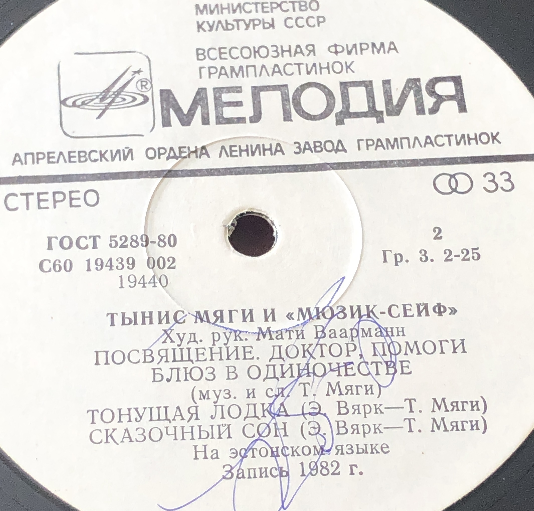 Виниловая пластинка Тынис Мяги и Мюзик-Сейф 300 мм