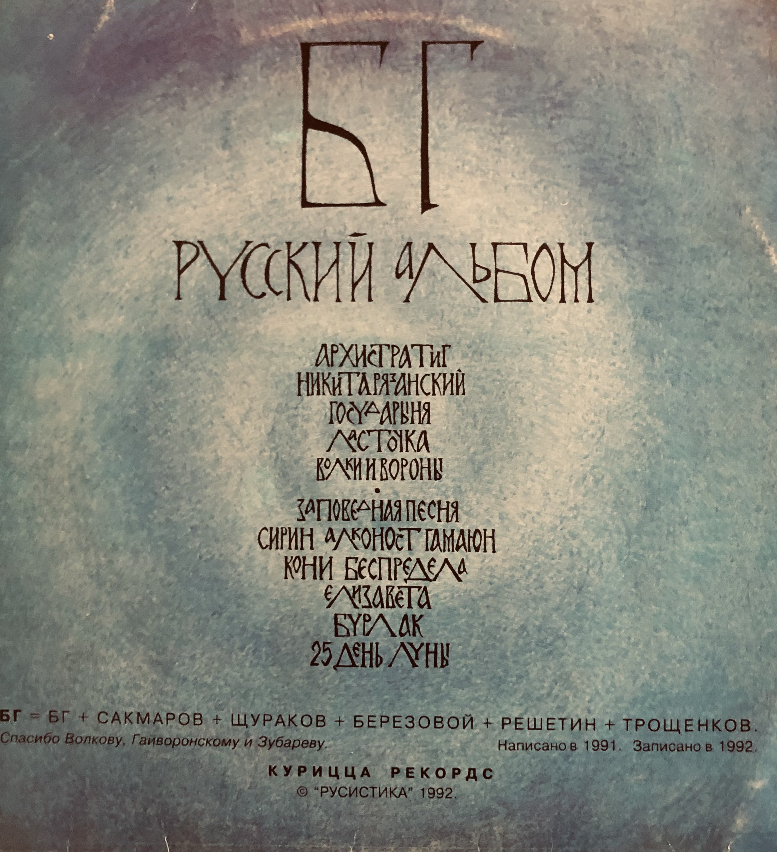 Виниловая пластинка Виниловая пластинка БГ Русский альбом