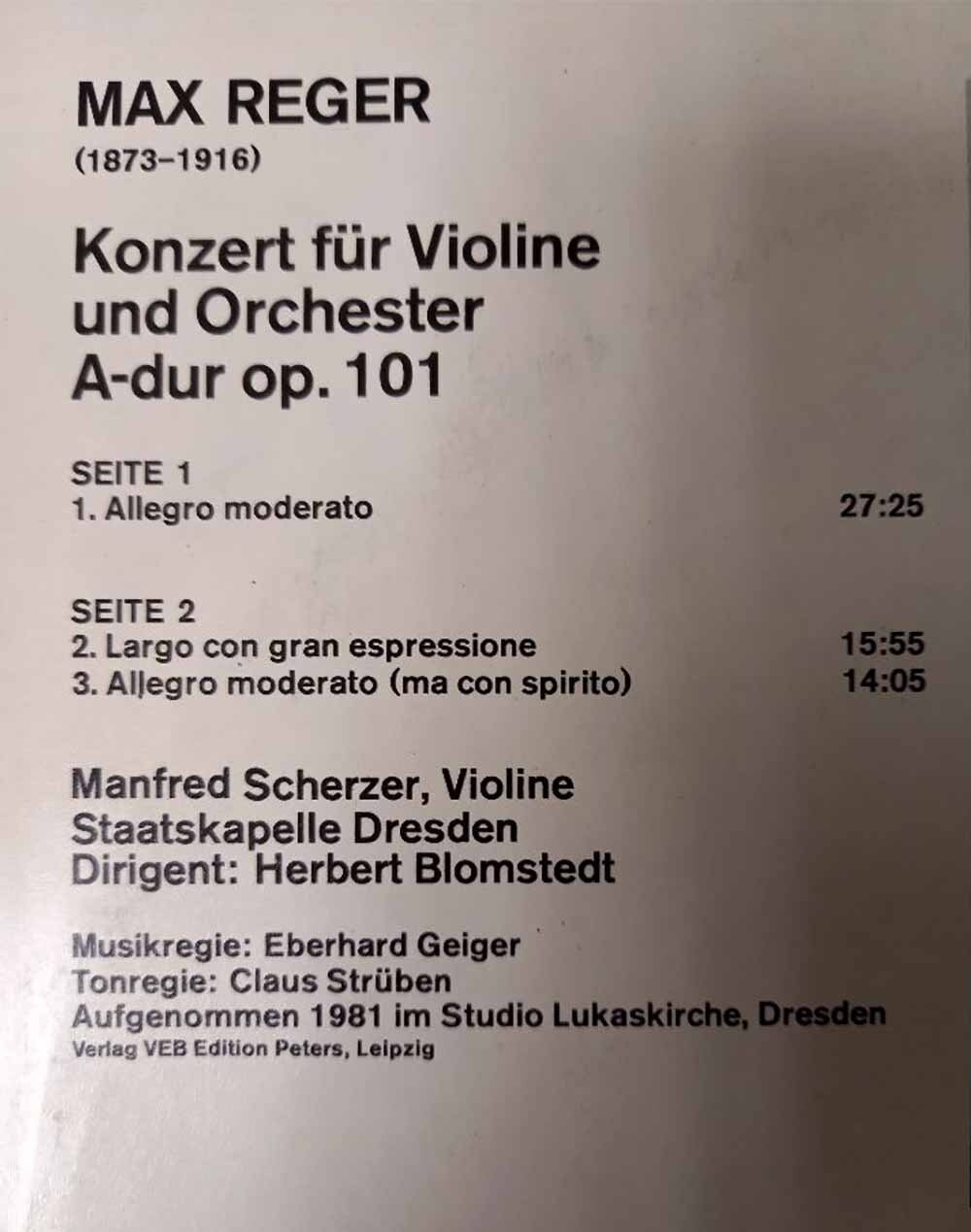 "M. Reger. Max reger violinkonzert" 300 мм. (Сост. отл.)