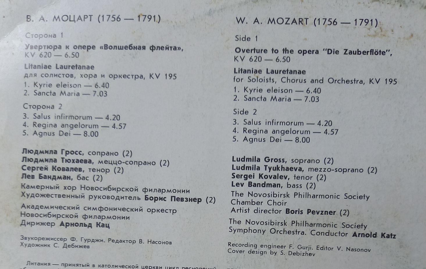 Пластинка виниловая "В. Моцарт. Увертюра к опере "Волшебная флейта"" 300 мм. (Сост. отл.)