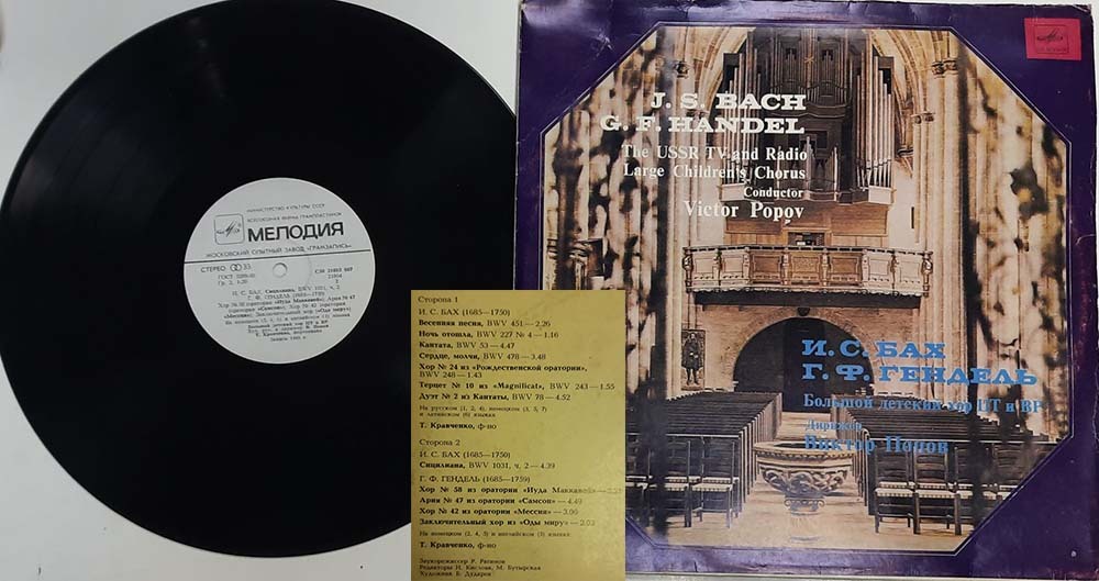 Пластинка виниловая "Дирижер В. Попов. И. Бах, Г. Гендель" 300 мм. (Сост. на фото)