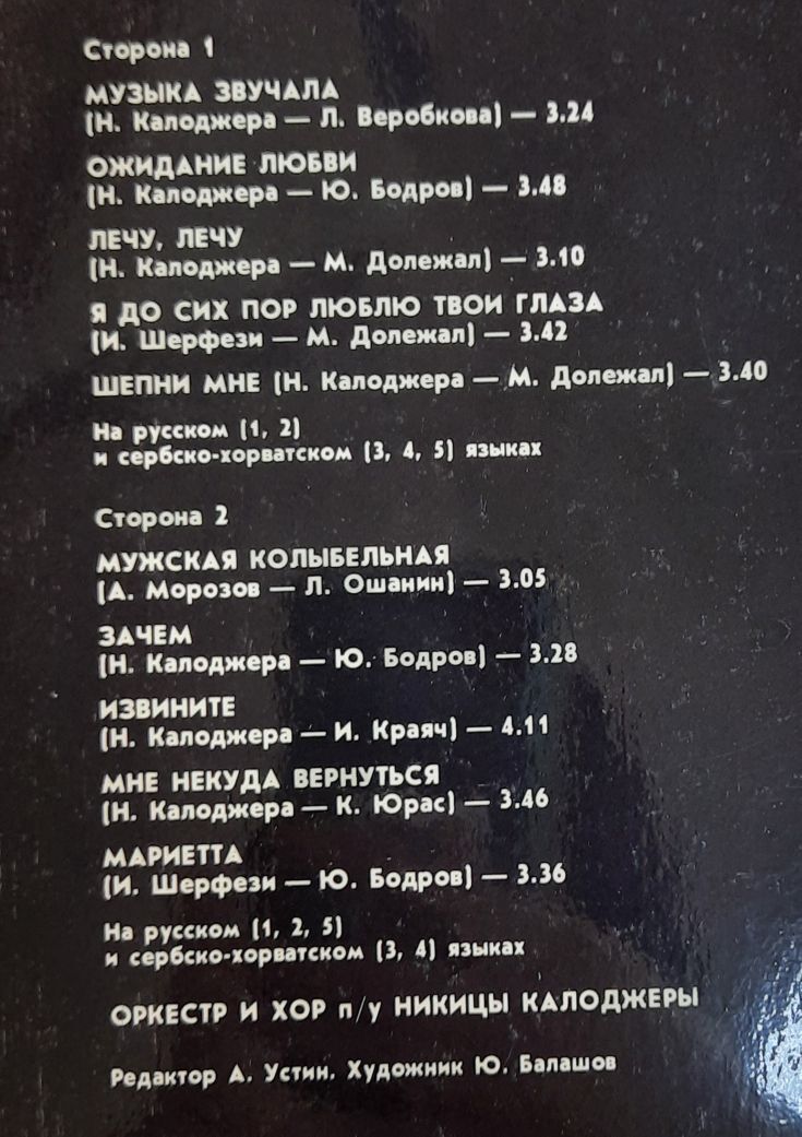 Пластинка виниловая "И. Шерфези. Мужская колыбельная" 300 мм. (Сост. отл.)