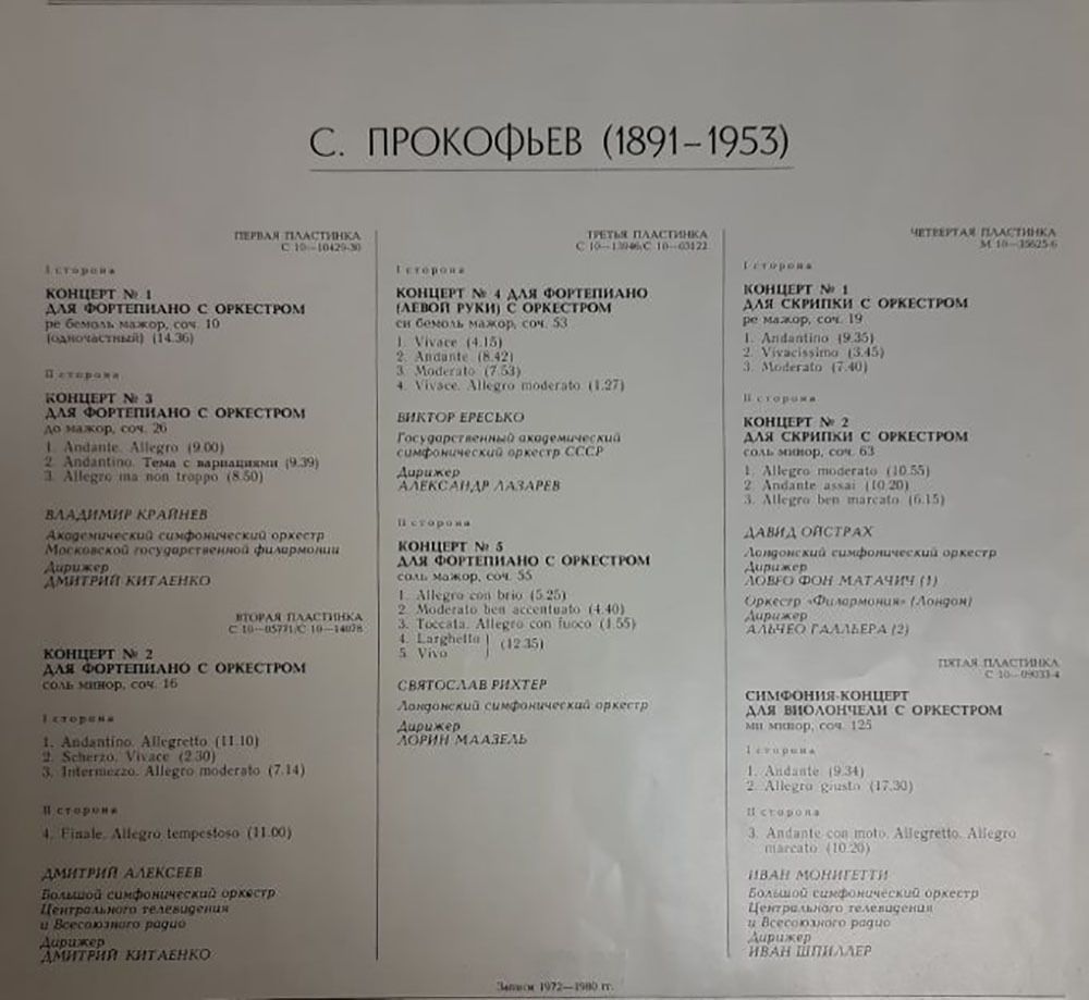 Набор виниловых пластинок (5 шт.) "С. Прокофьев. Собрание сочинений" 300 мм. (Сост. отл.)