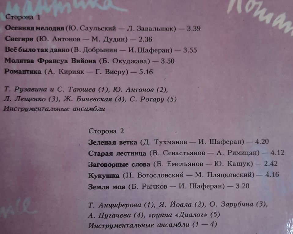 Пластинка виниловая "Эстрадные песни. Романтика" 300 мм. (Сост. отл.)