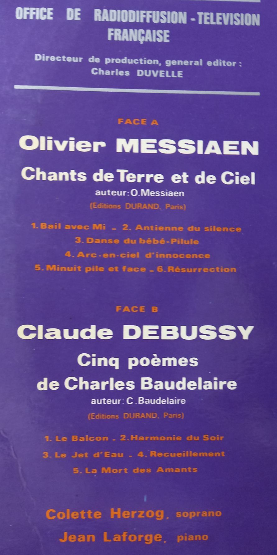 Пластинка виниловая "К. Дебюсси, O. Messiaen. Inedits" RTF 300 мм. (Сост. отл.)