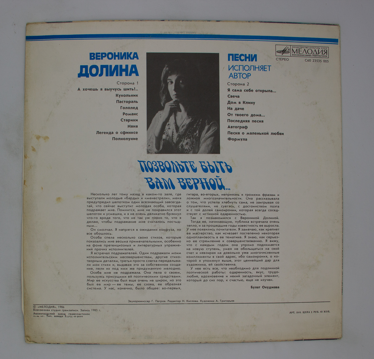 Виниловая пластинка Вероника Долина - Позвольте быть вам верной..., - LP