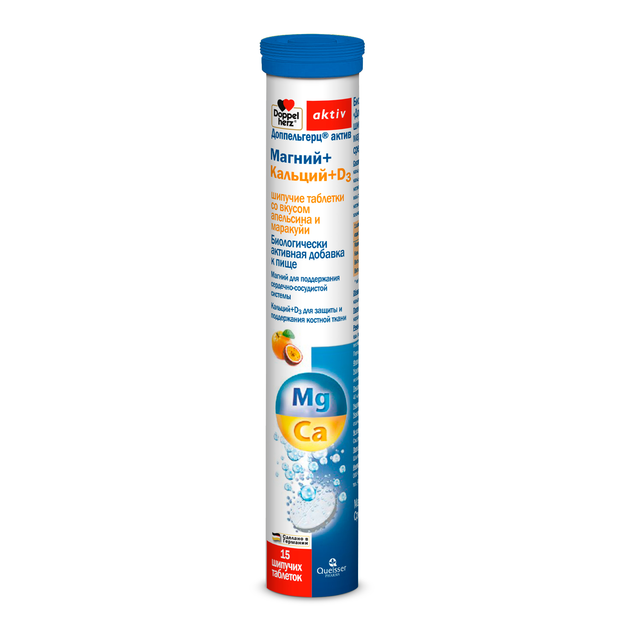 Доппельгерц Актив Магний+Кальций+Вит Д3 апельсин+маракуя таблетки шипучие, 15 шт