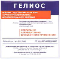 Гелиос - гидроколлоидная раневая повязка на основе терапевтической системы, 10x10 см