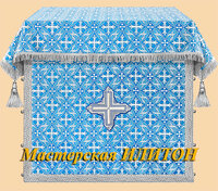 Облачение на престол или жертвенник из парчи голубое с серебром. Любой размер или 100 х 100 х 100 см