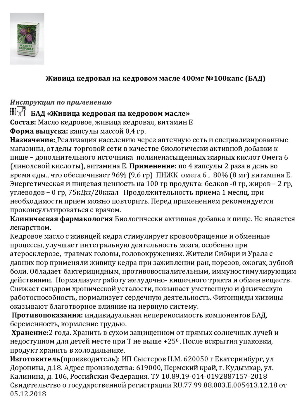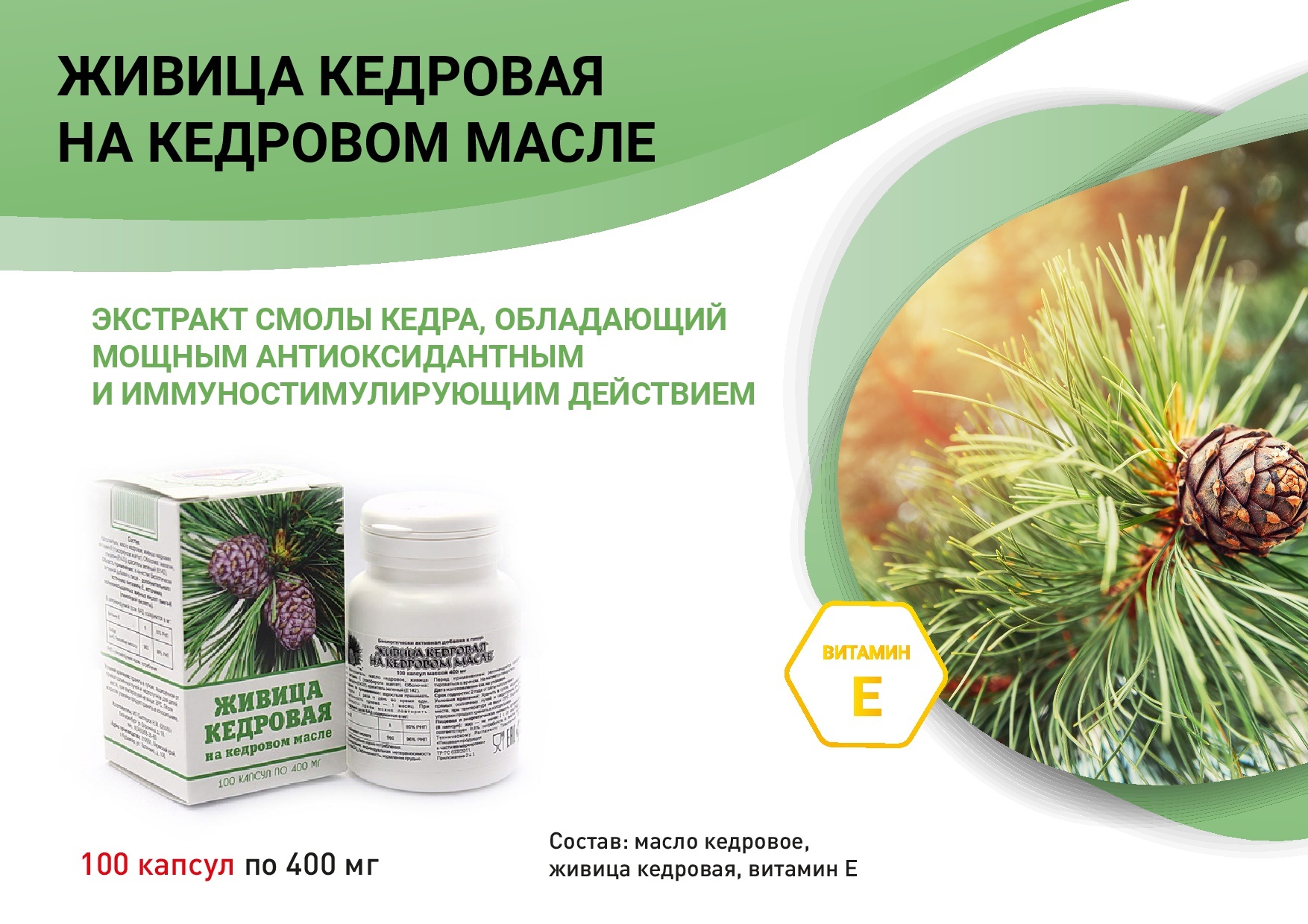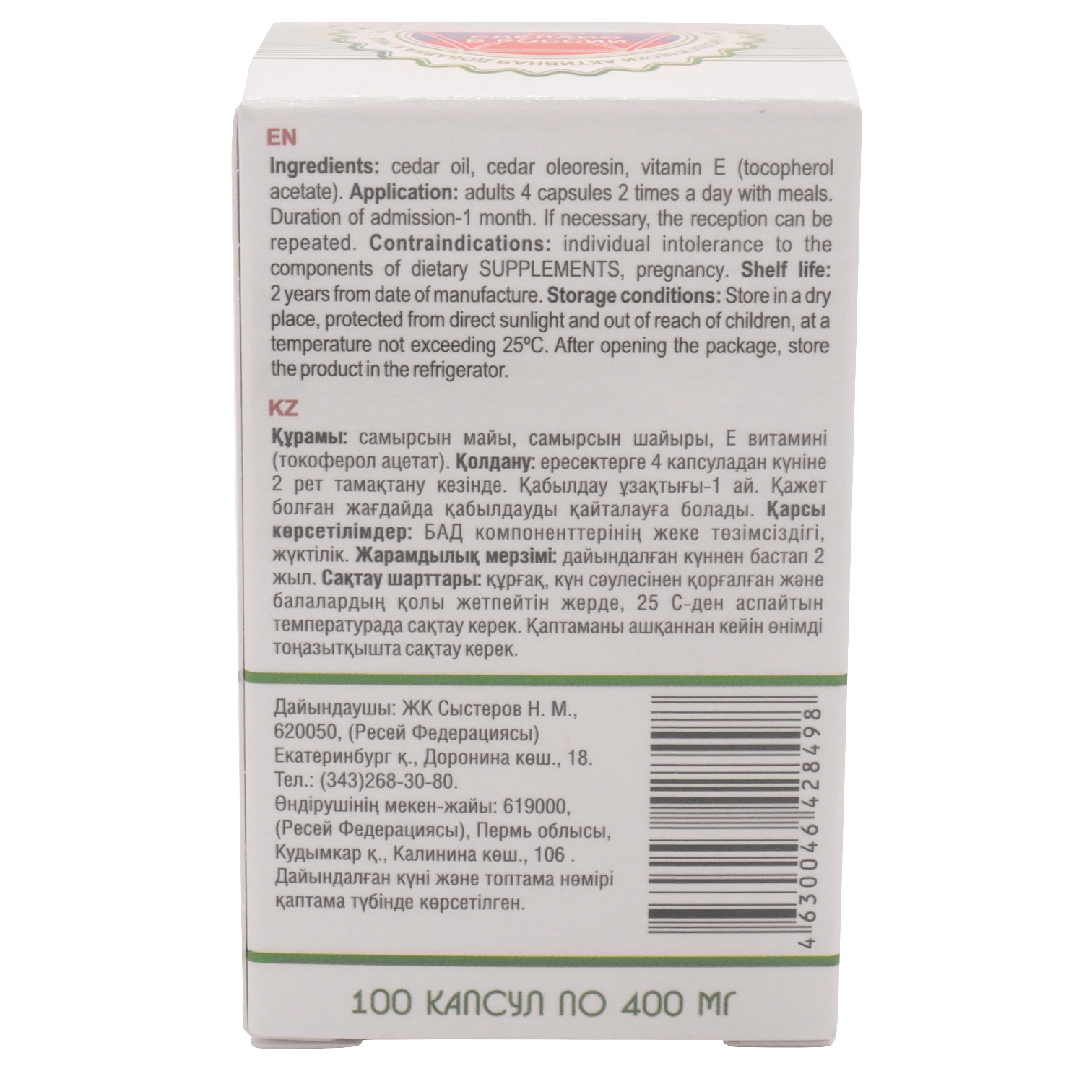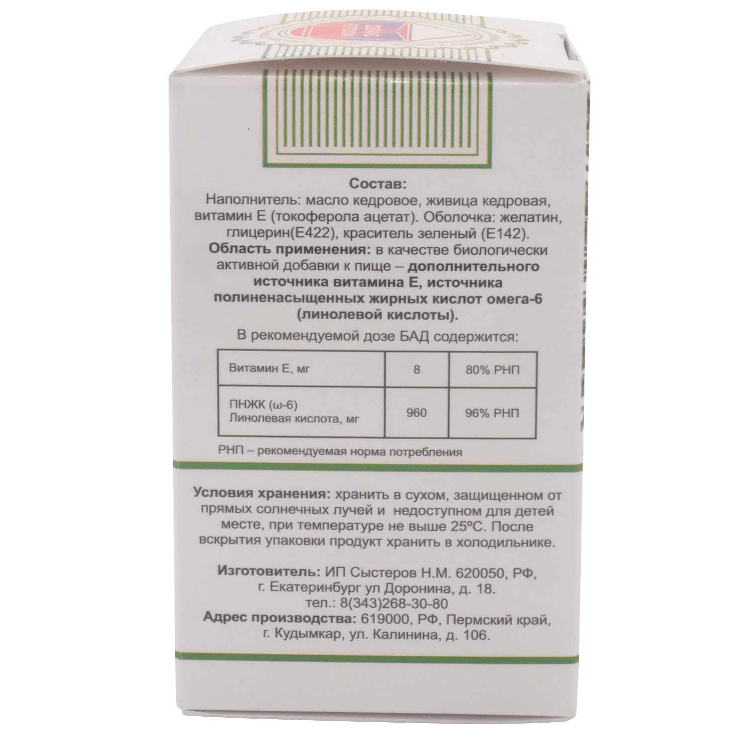 БАД Живица кедровая на кедровом масле 400 мг №100 капсул.