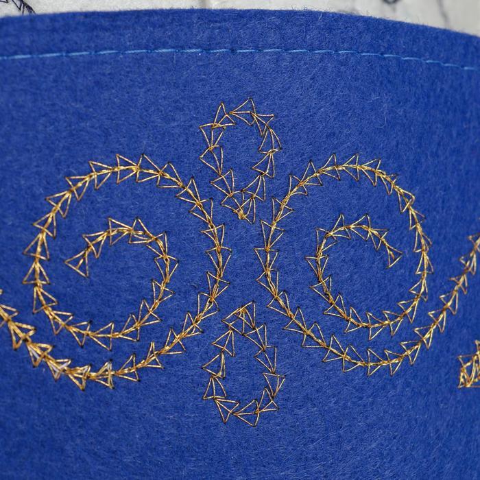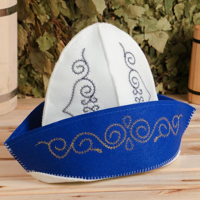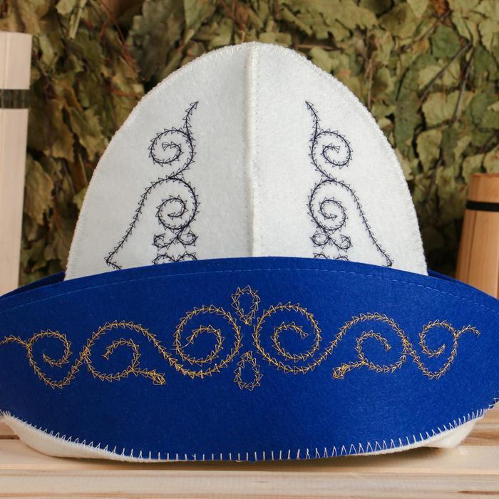 Шапка для бани с вышивкой 'Казахстанский колпак мужской' с золотыми и голубыми узорами