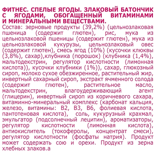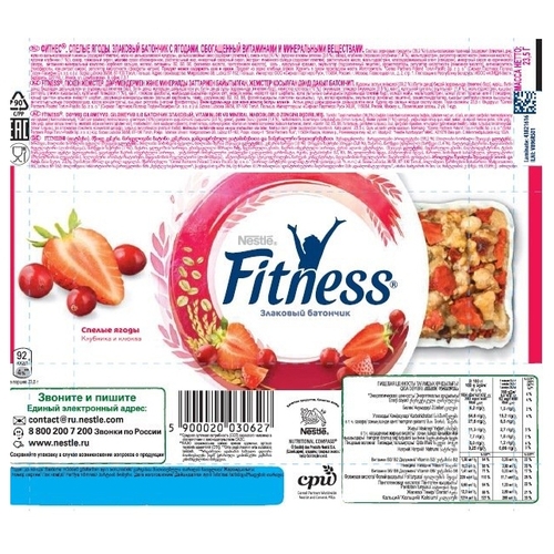 Злаковый батончик Nestle Fitness Спелые ягоды Клубника и клюква, 23.5 г
