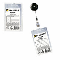 Бейдж BRAUBERG, 90х60 мм, вертикальный, с держателем-рулеткой 70 см, 235710