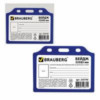 Бейдж BRAUBERG, 55х85 мм, горизонтальный, жесткокаркасный, без держателя, синий, 235740