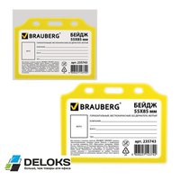Бейдж BRAUBERG, 55x85 мм, горизонтальный, жесткокаркасный, без держателя, желтый