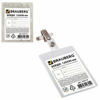 Бейдж BRAUBERG, 120х90 мм, вертикальный, мягкий, с клипсой и булавкой, 235714