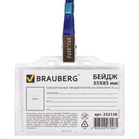 Бейдж brauberg, 55х85 мм горизонтальный, твердый пластик, на синей ленте 45 см, 232138